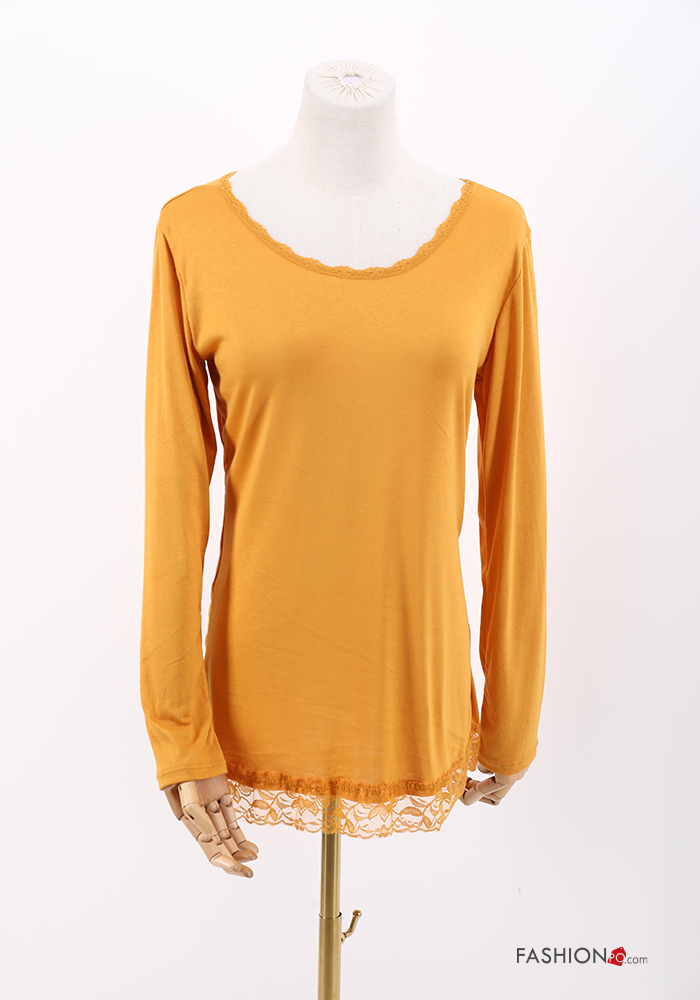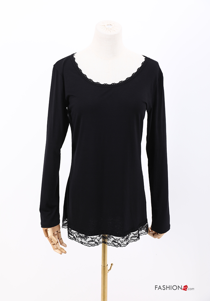 Home > Clothing > T-shirts & Tops > lace trim Long sleeved top