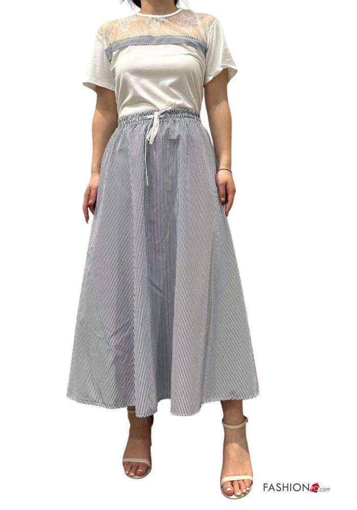Home > Clothing > T-shirts & Tops > short sleeve crew neck lace trim Cotton T-shirt