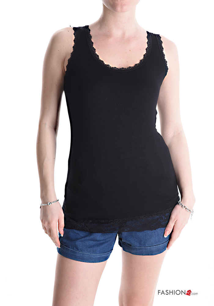 Home > Clothing > T-shirts & Tops > lace trim Tank-Top