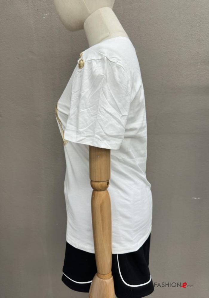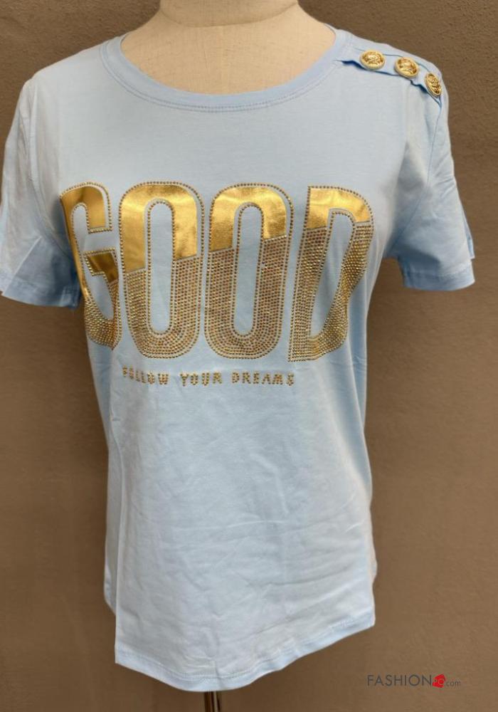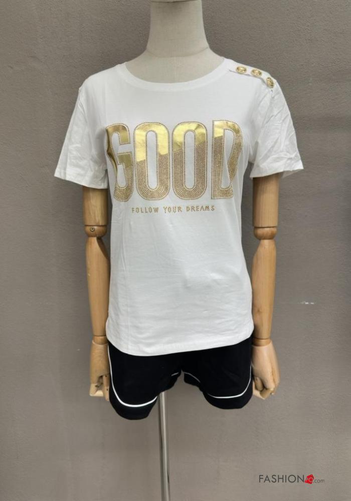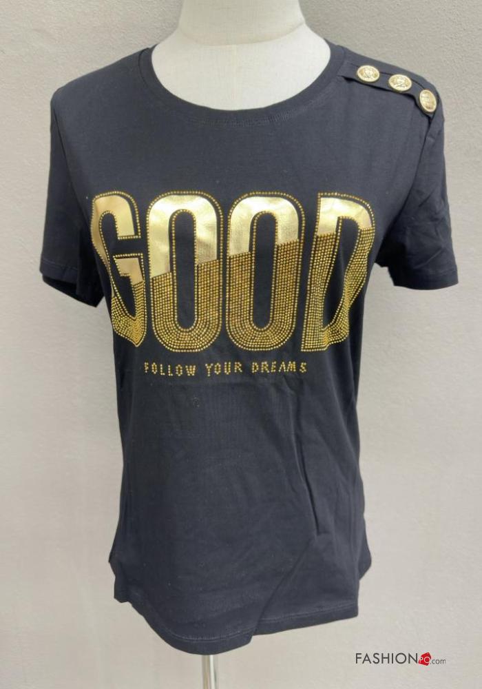 Home > Clothing > T-shirts & Tops > Lettering print short sleeve crew neck Cotton T-shirt with buttons