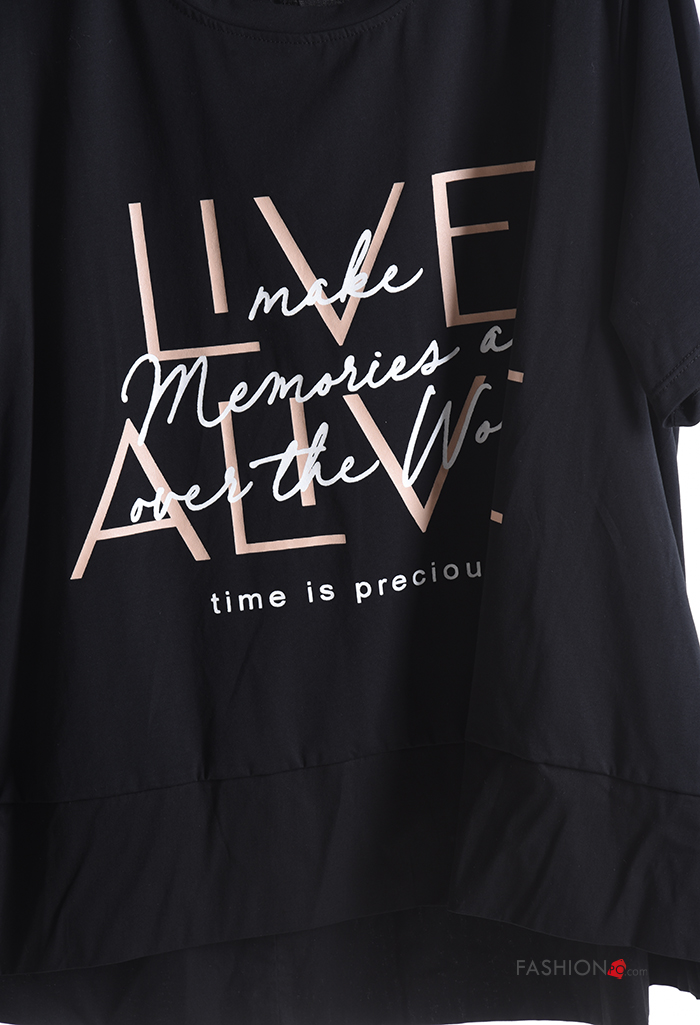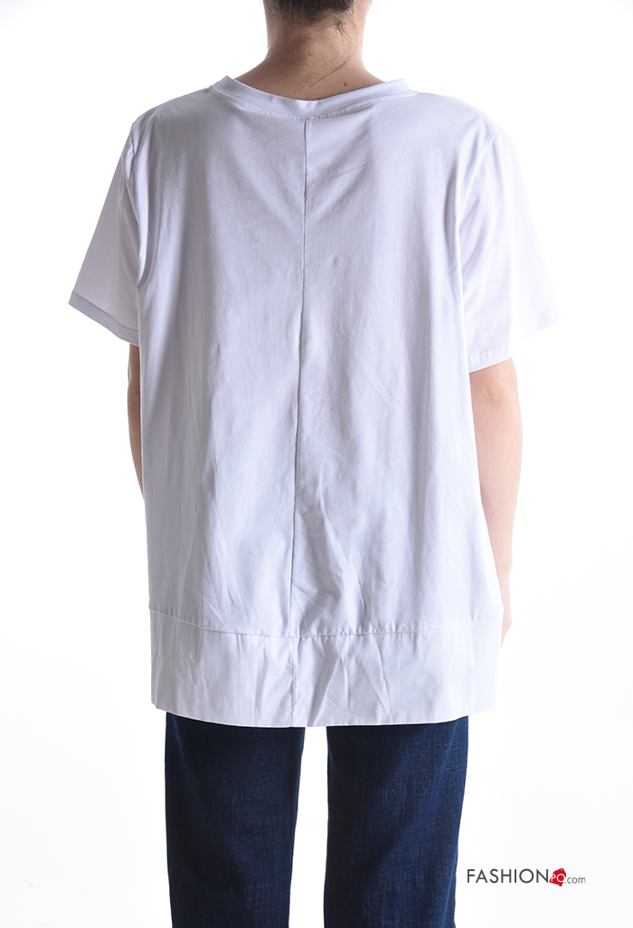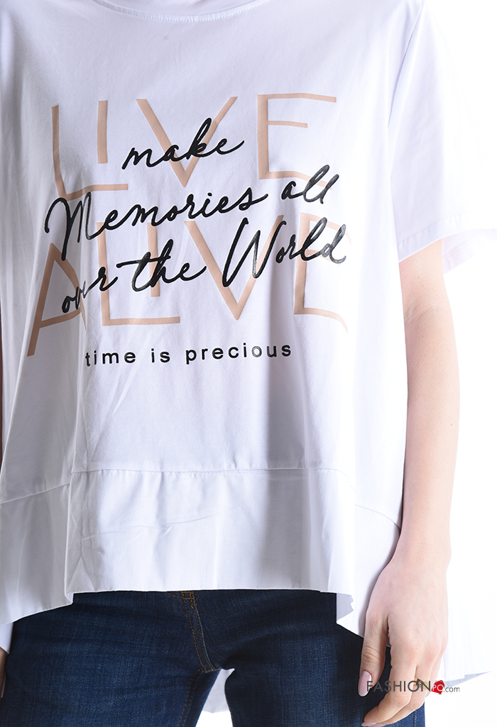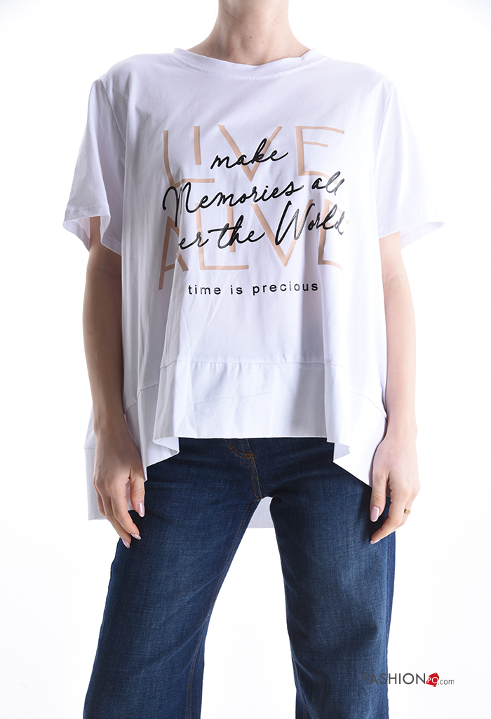 Lettering print short sleeve asymmetrical Cotton T-shirt