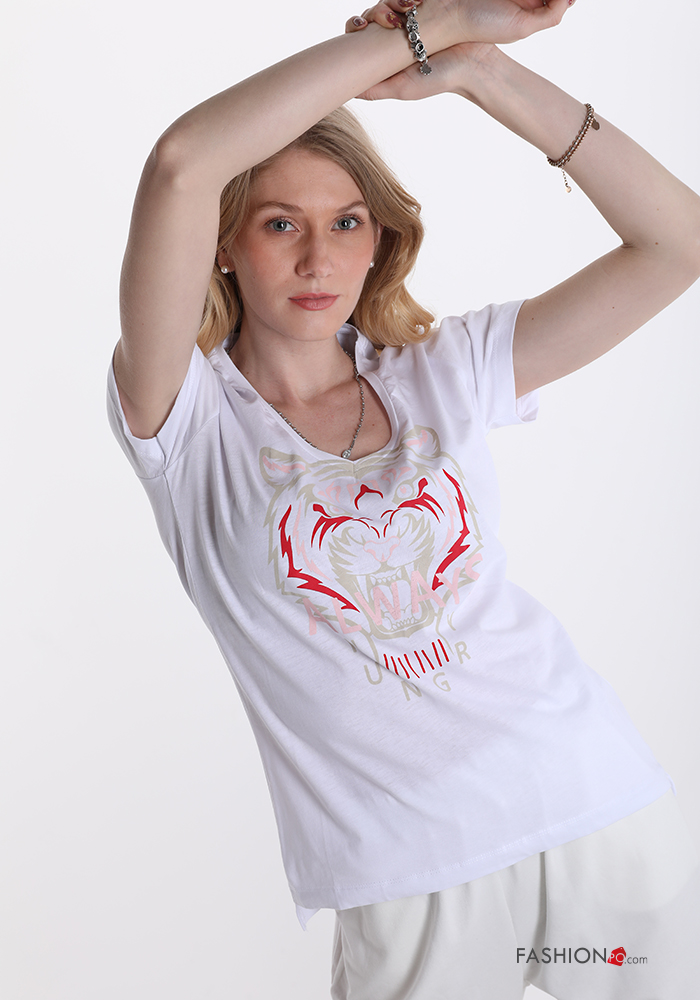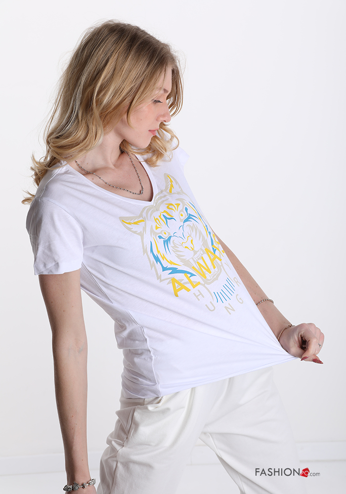 Home > Clothing > T-shirts & Tops > Patterned Cotton T-shirt with v-neck