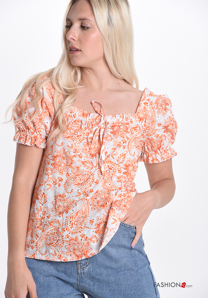 Home > Clothing > T-shirts & Tops > Floral Cotton T-shirt with bow