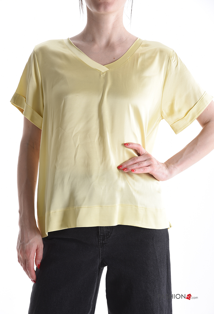 Home > Clothing > T-shirts & Tops > satin short sleeve T-shirt with v-neck