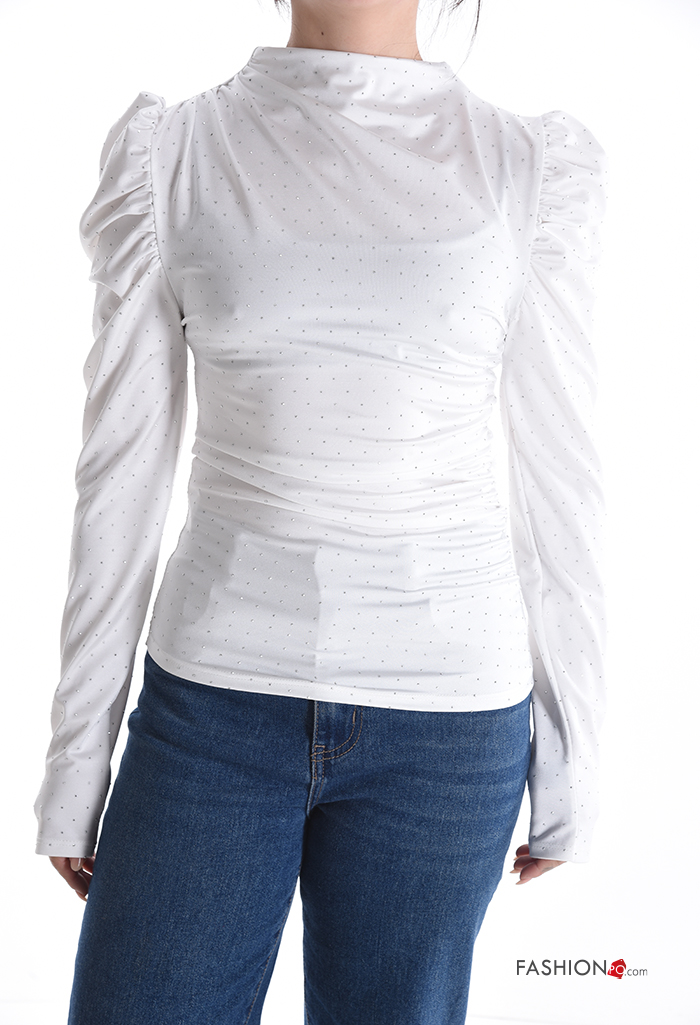 Home > Clothing > T-shirts & Tops > puff sleeve Long sleeved top with rhinestones