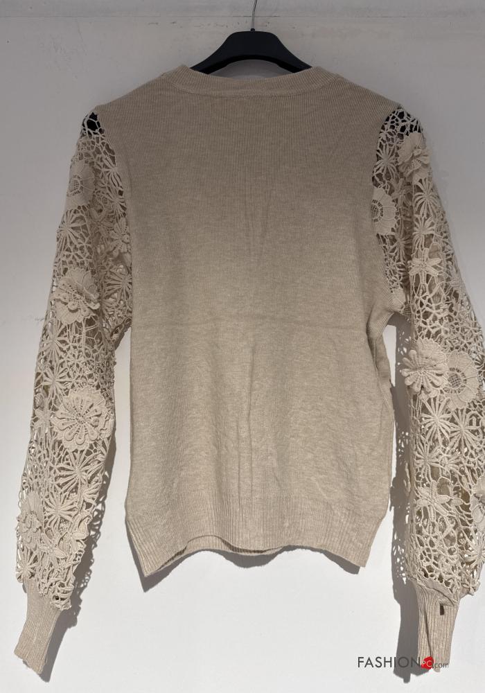 Home > Clothing > Knitwear & Cardigans > Embroidered long sleeve crew neck lace trim Sweater