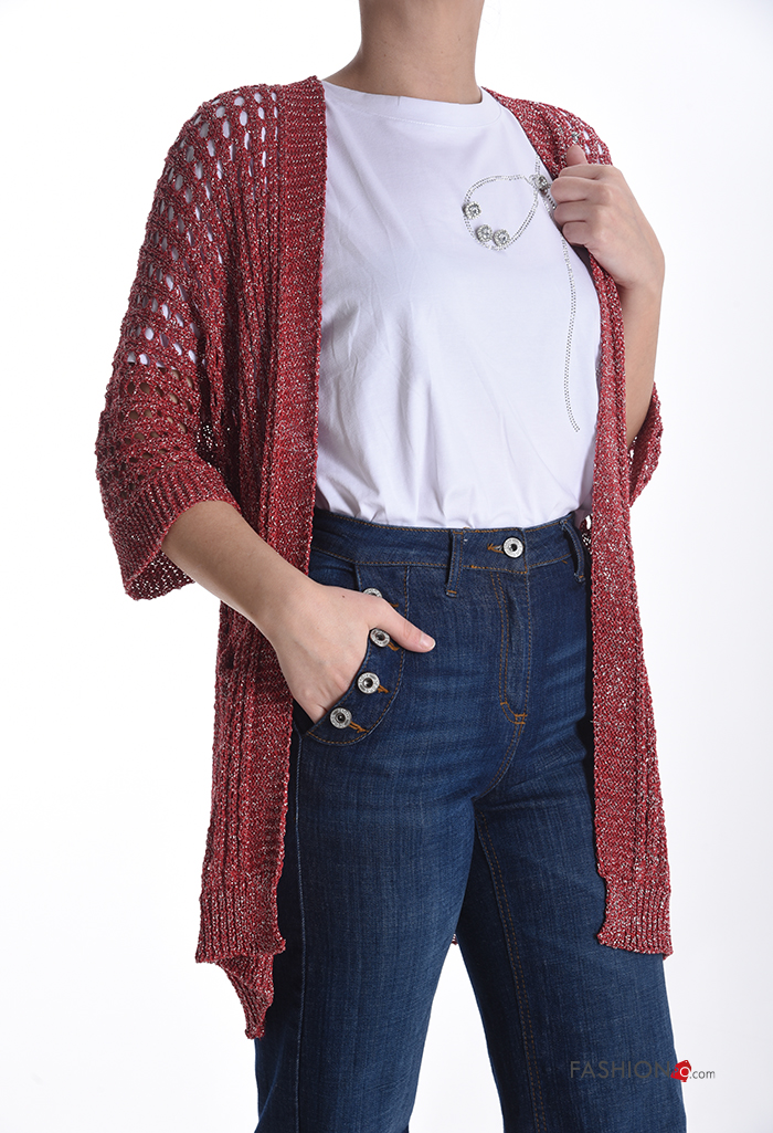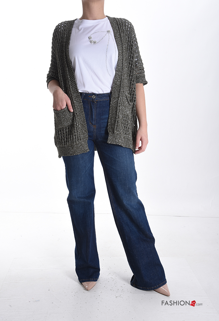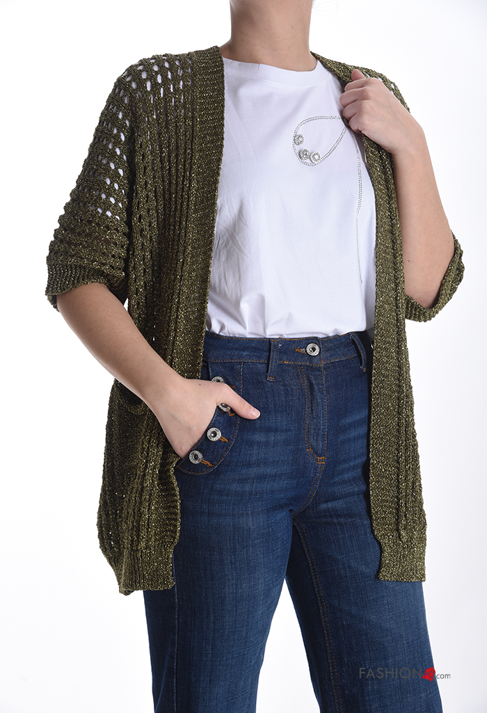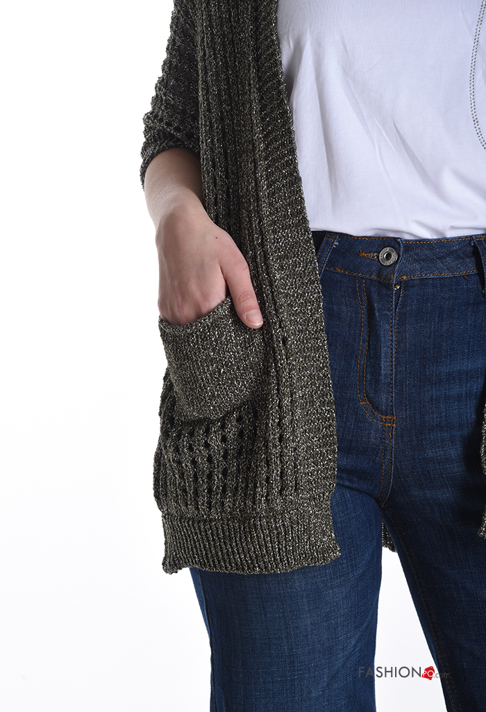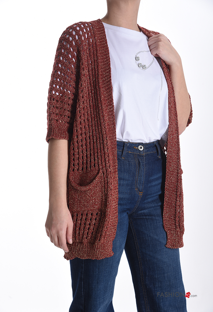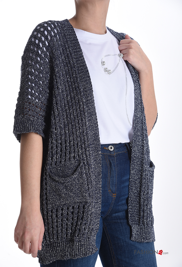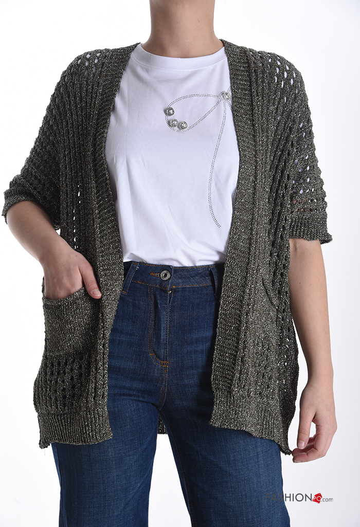 Home > Clothing > Knitwear & Cardigans > short sleeve fishnet lurex Cardigan with pockets