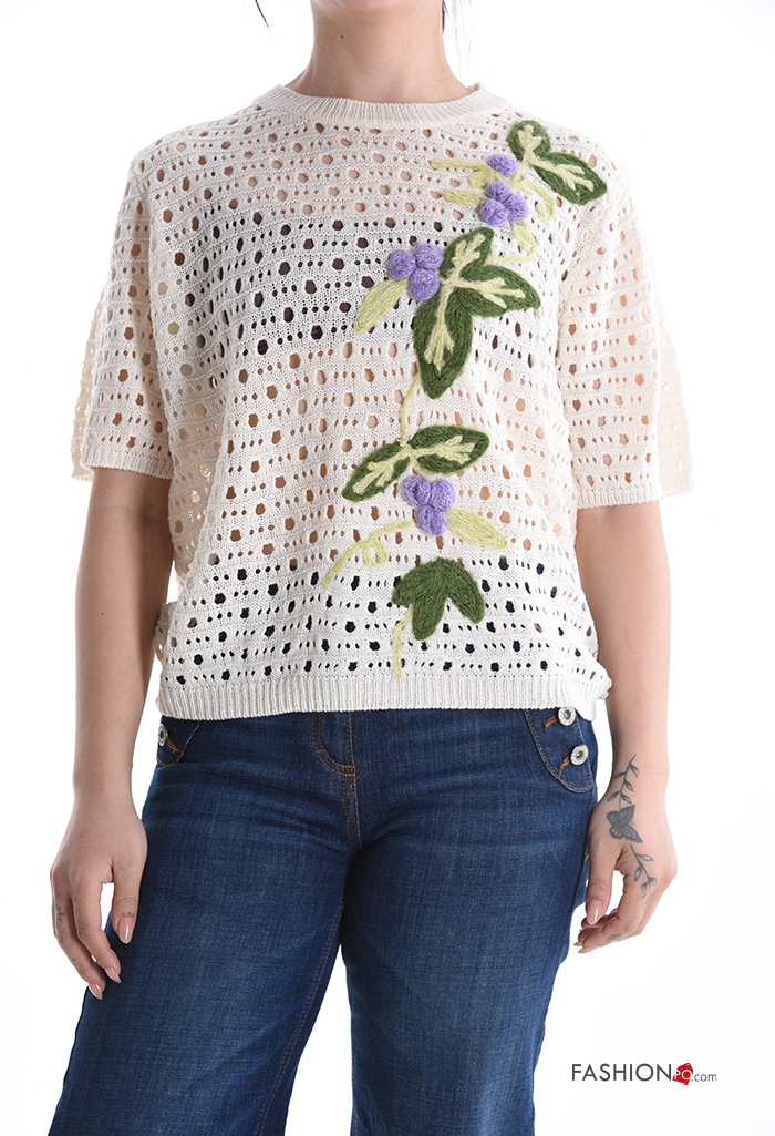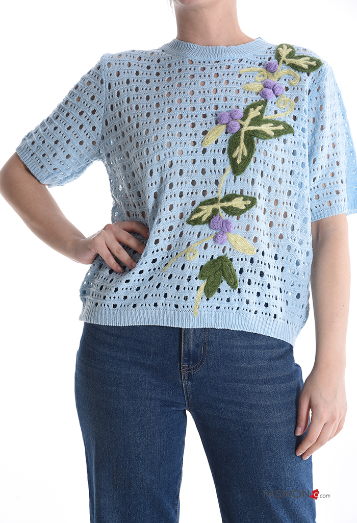 Embroidered short sleeve crew neck knitted Sweater