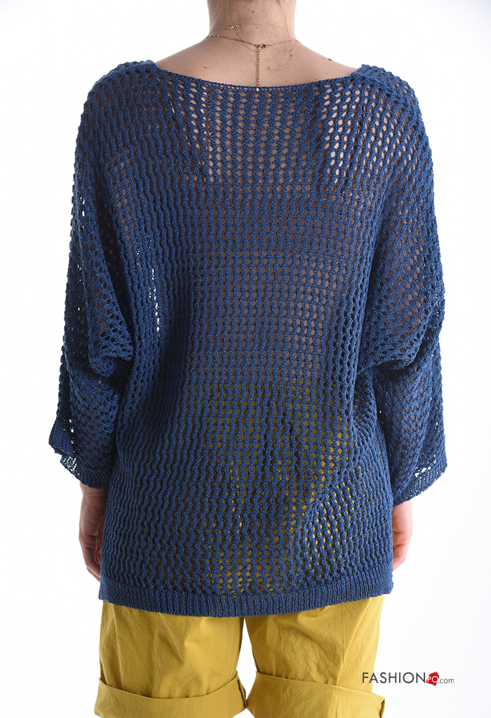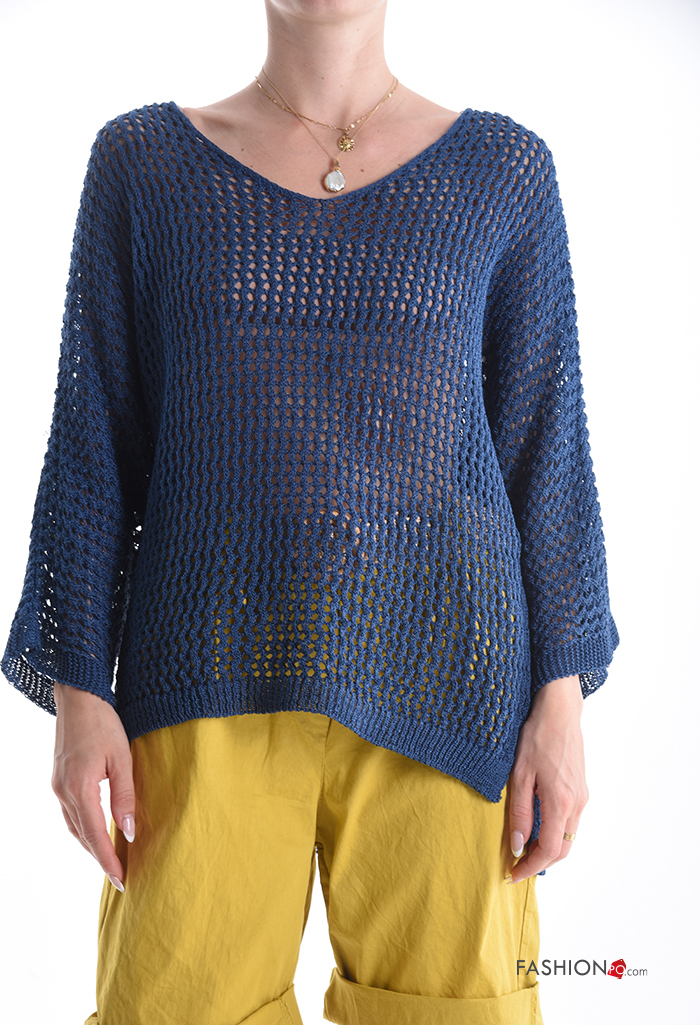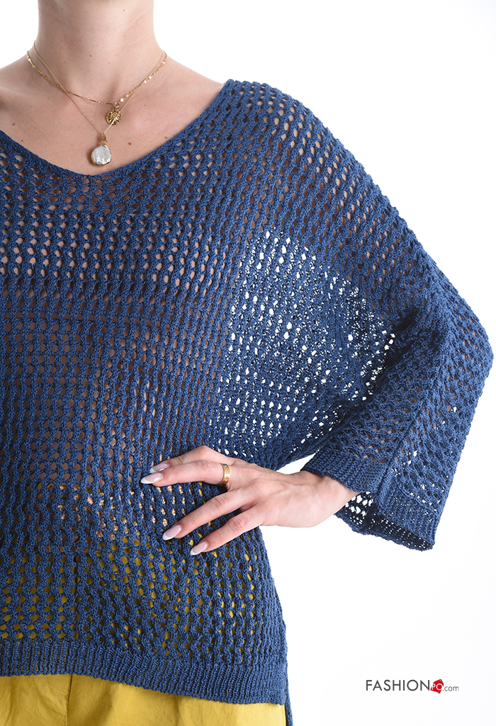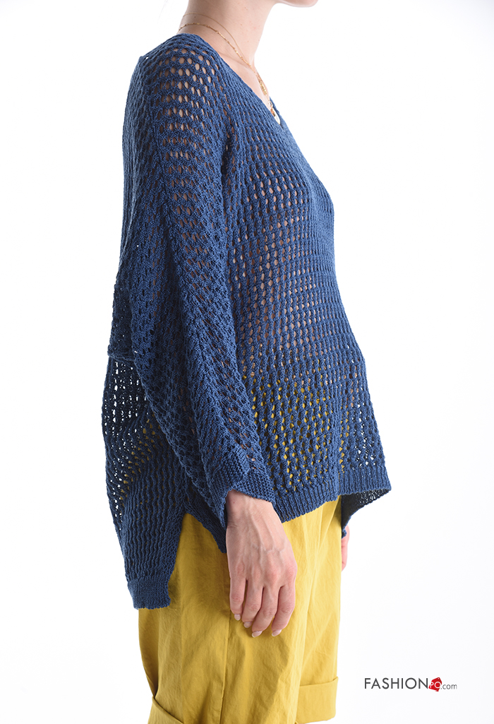 long sleeve fishnet Sweater with v-neck