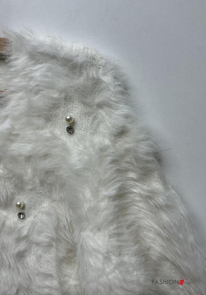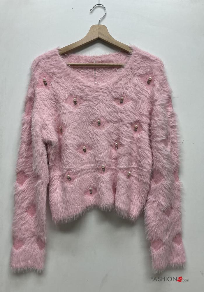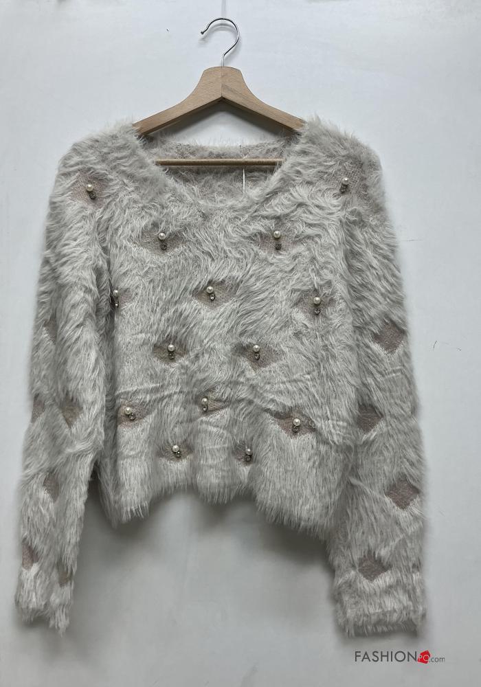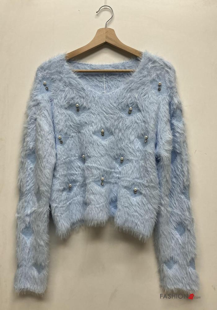 long sleeve Sweater with v-neck with rhinestones with pearls