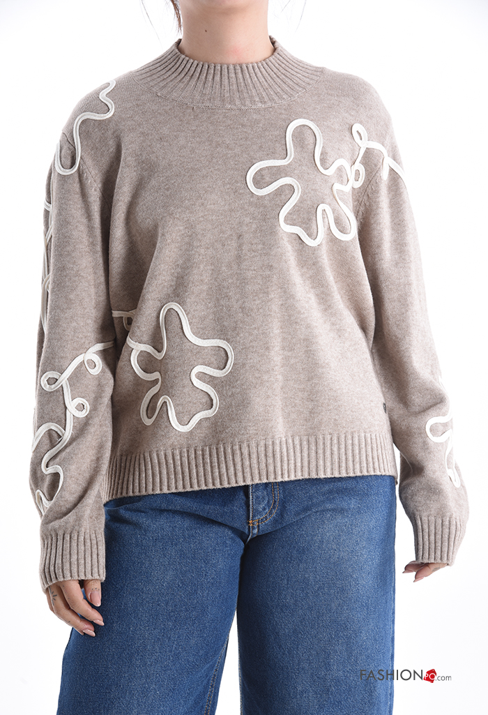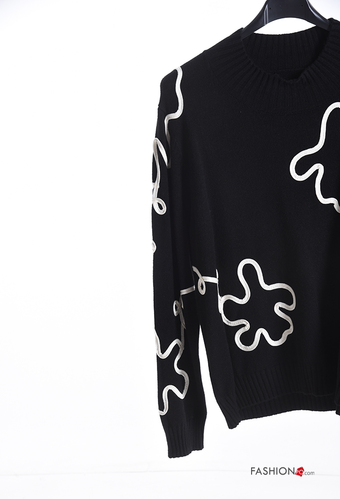 Abstract print long sleeve crew neck Sweater