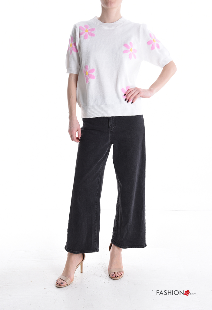 Floral short sleeve crew neck Sweater