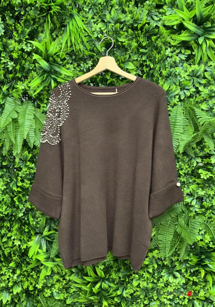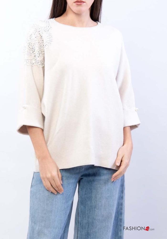 Home > Clothing > Knitwear & Cardigans > crew neck Sweater with pearls 3/4 sleeve with rhinestones