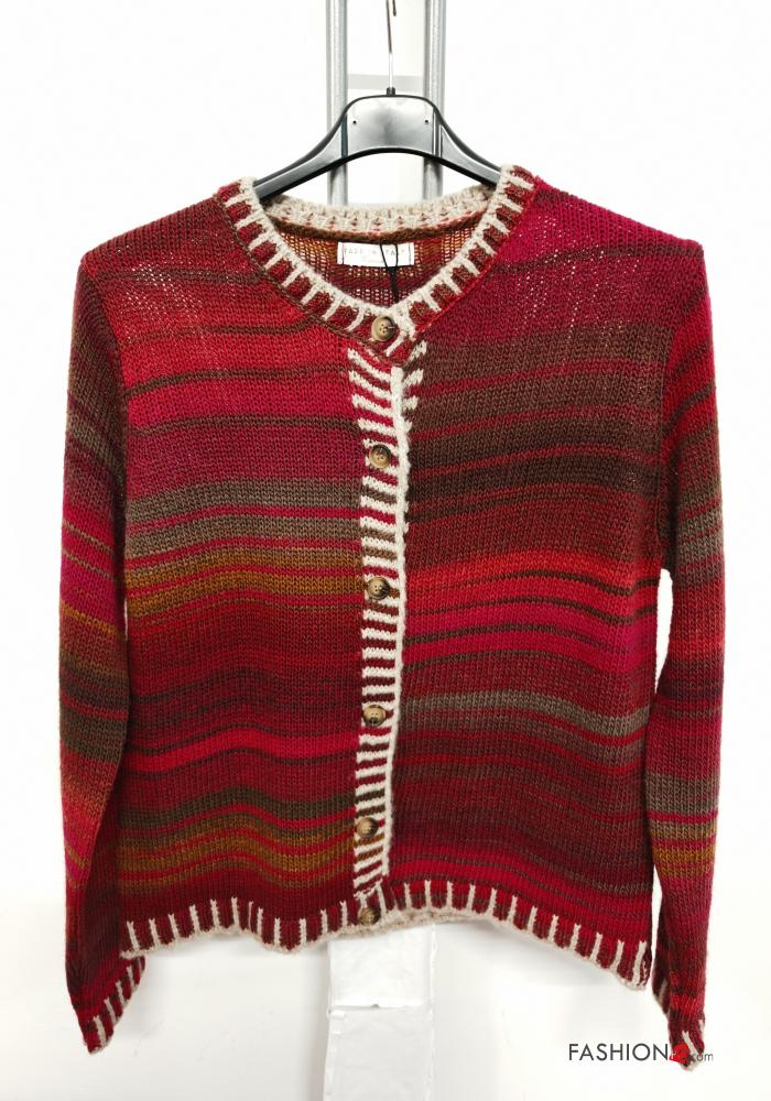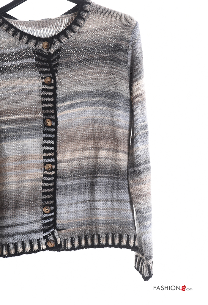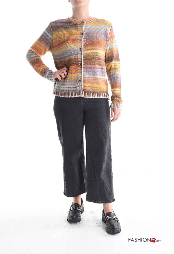 Multicoloured long sleeve crew neck Wool Mix Cardigan with buttons
