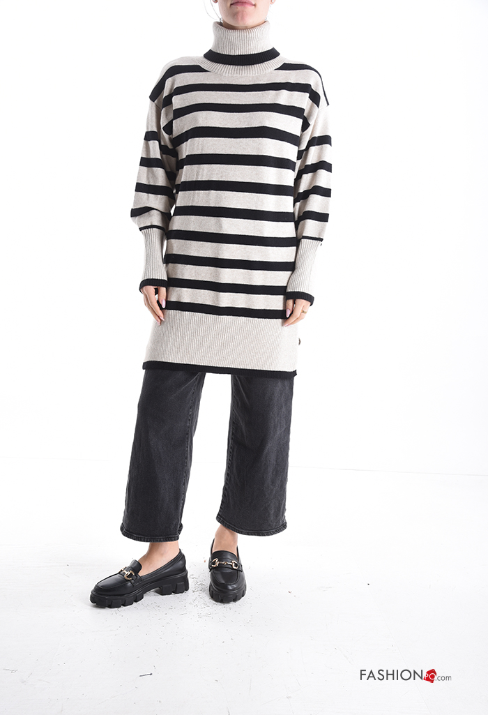 Home > Clothing > Knitwear & Cardigans > Striped long sleeve long Sweater Rollneck