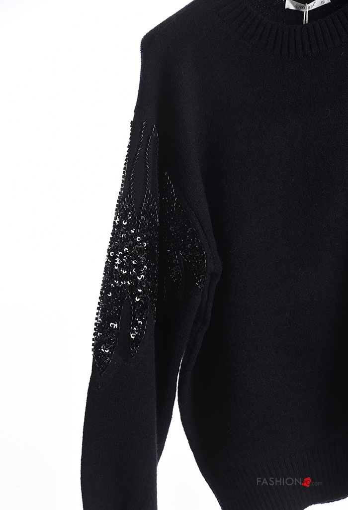 long sleeve crew neck Sweater with sequins with rhinestones