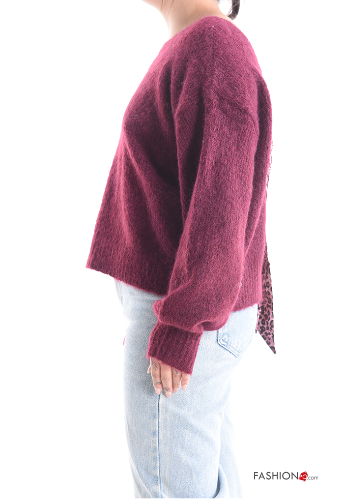 long sleeve crew neck backless Wool Mix Sweater with bow