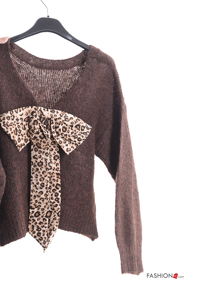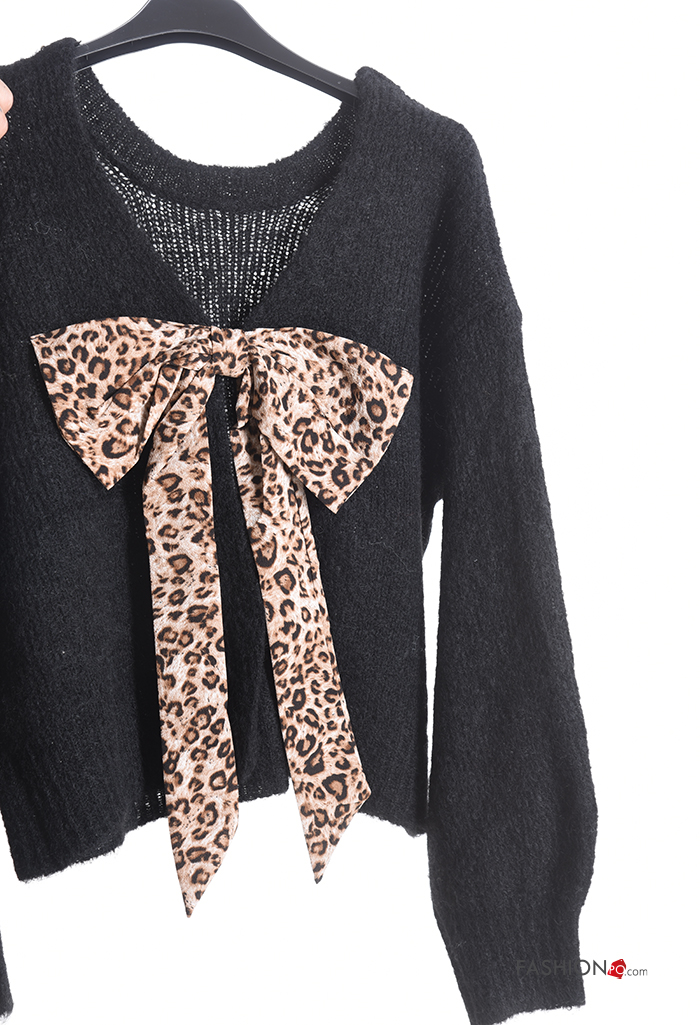 Home > Clothing > Knitwear & Cardigans > long sleeve crew neck backless Wool Mix Sweater with bow
