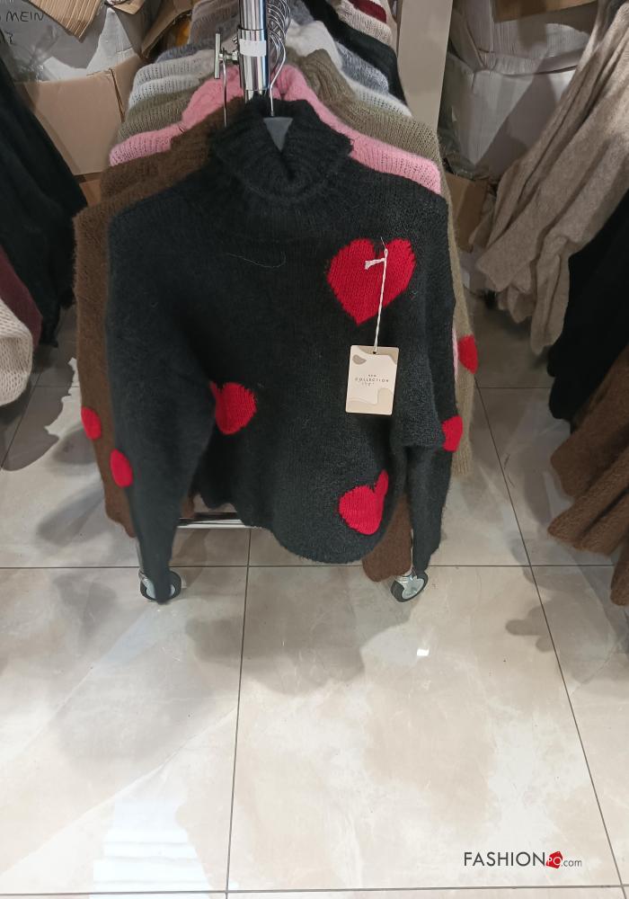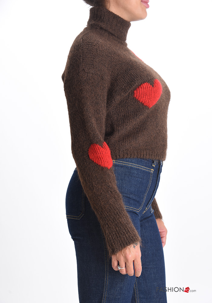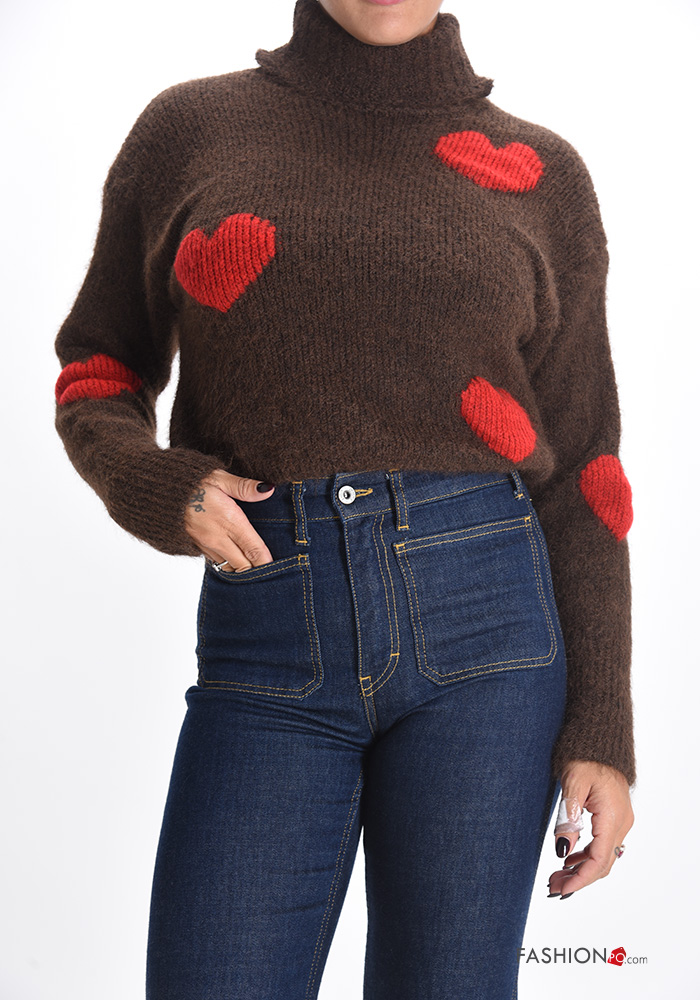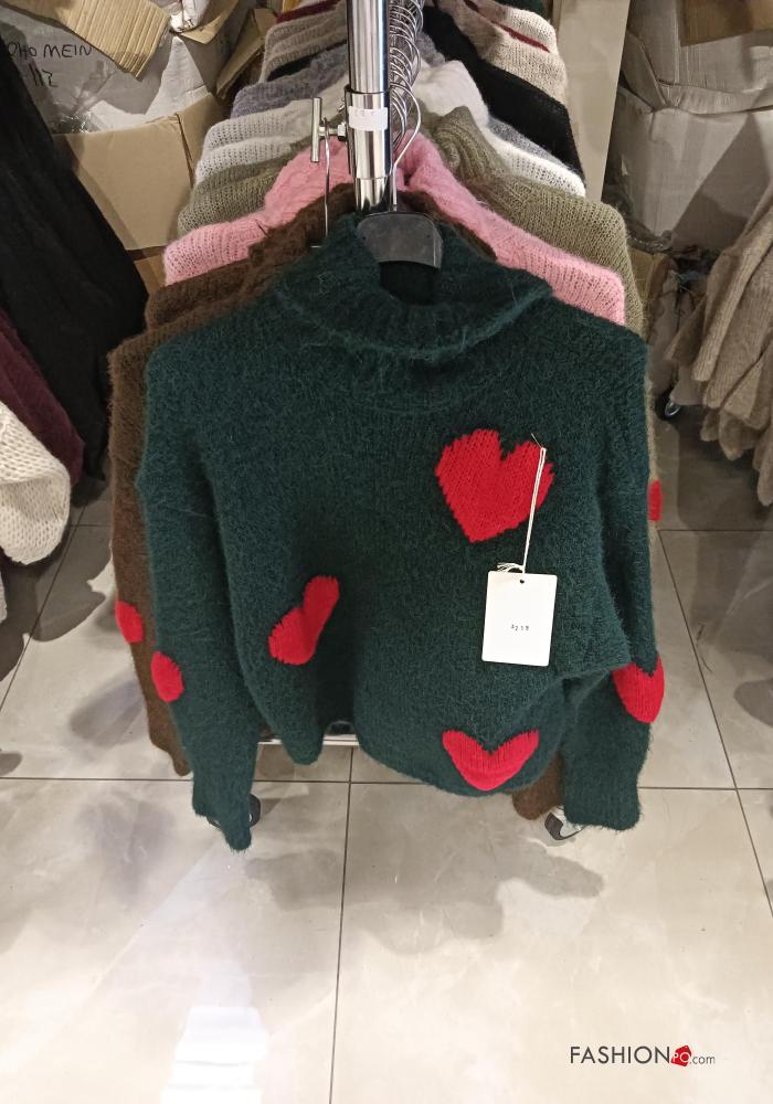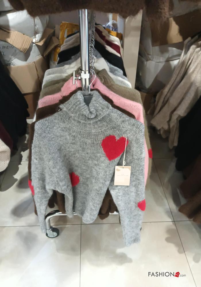 Home > Clothing > Knitwear & Cardigans > heart motif long sleeve mini Wool Mix Sweater Rollneck