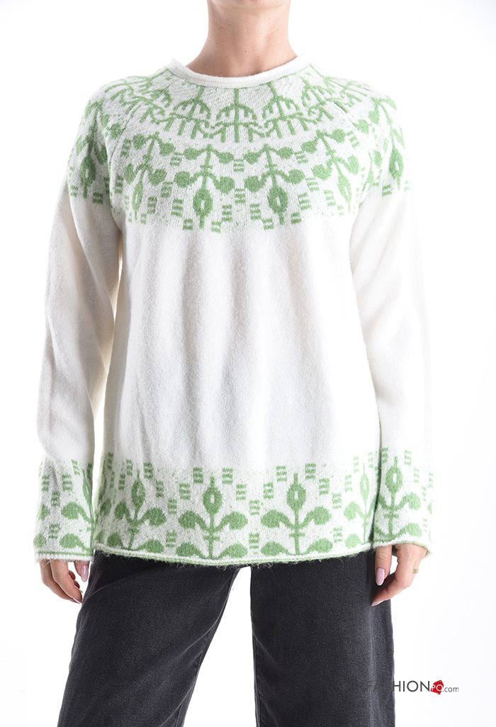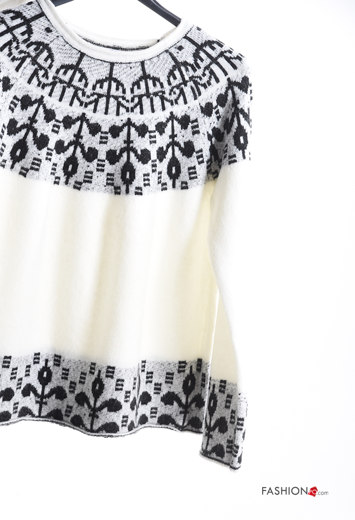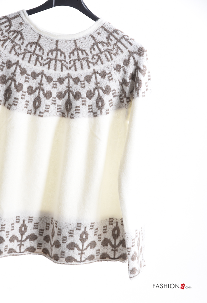 Embroidered long sleeve crew neck Wool Mix Sweater