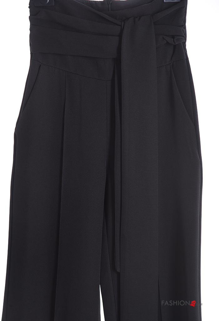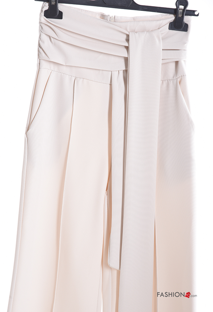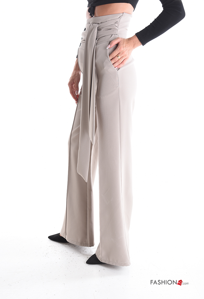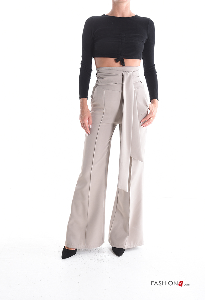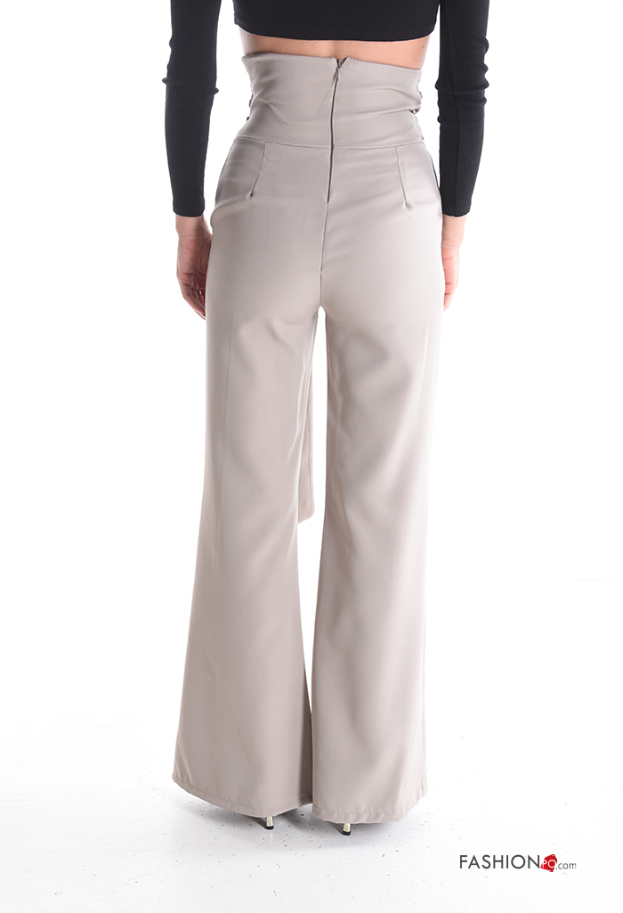 flared high waist Trousers with zip with sash