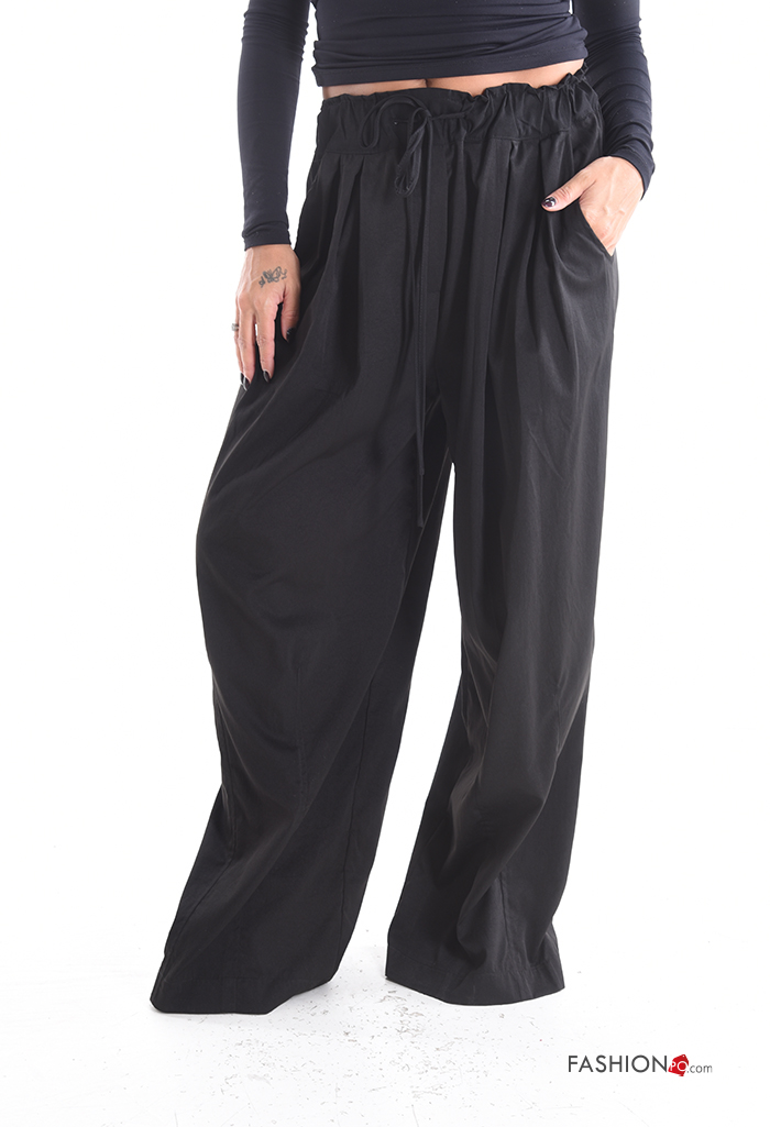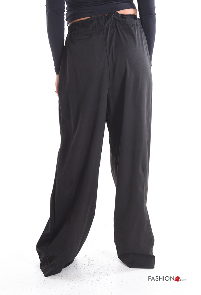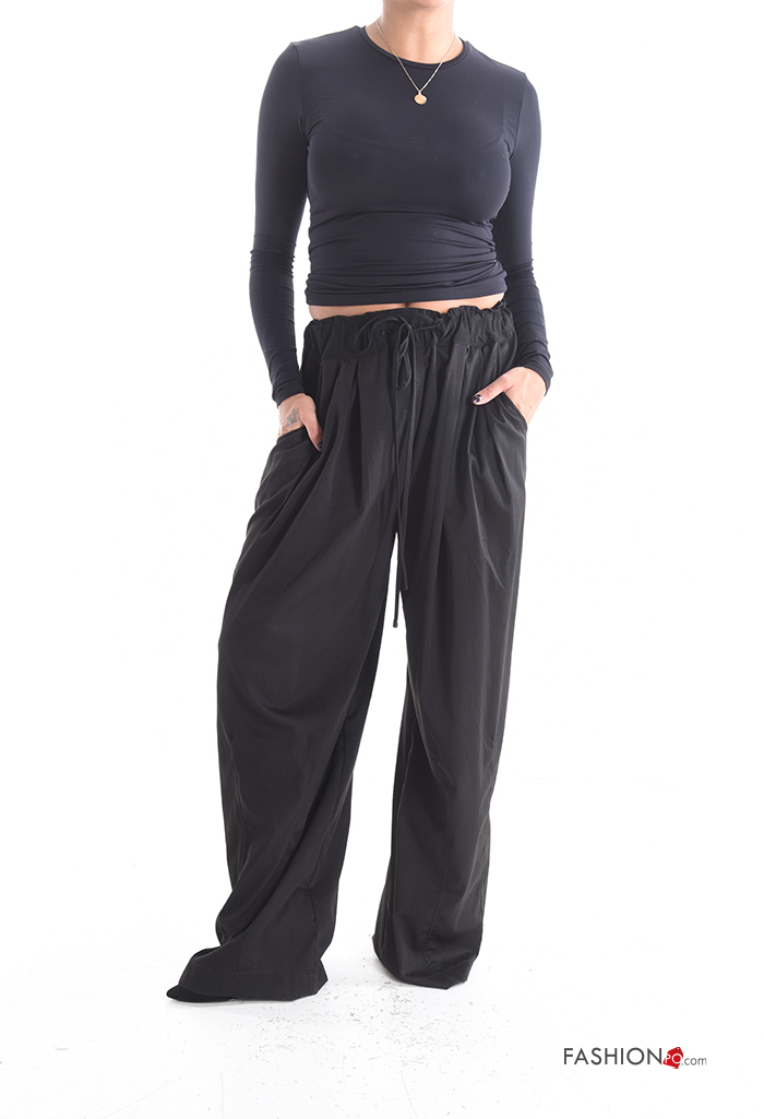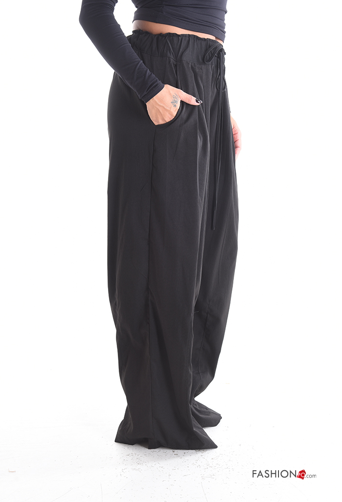 wide leg long Trousers with pockets with elastic