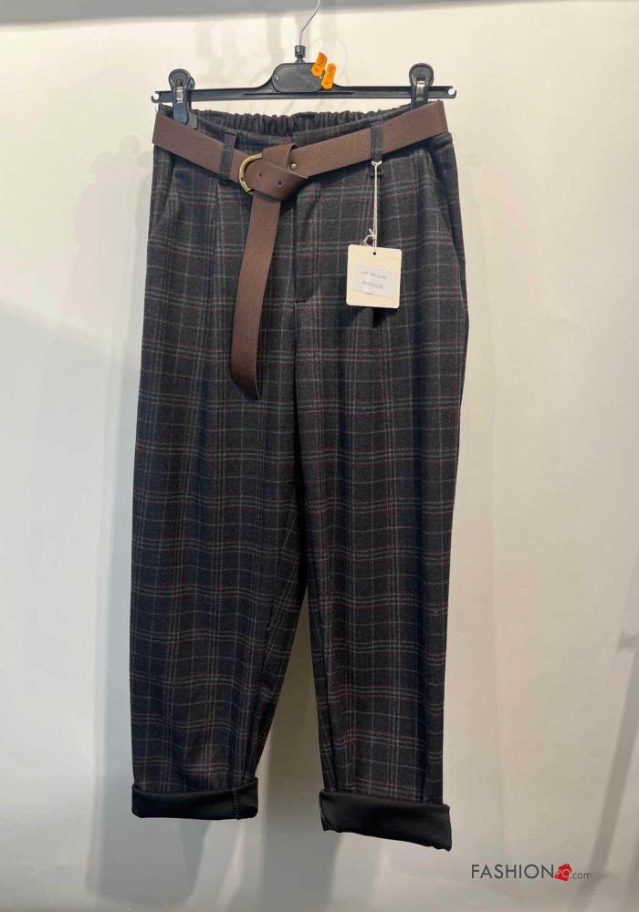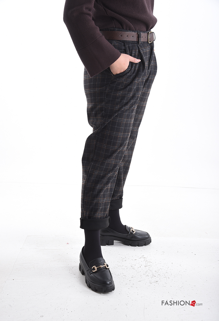 Home > Clothing > Trousers > Tartan Trousers with belt with buttons with zip with pockets