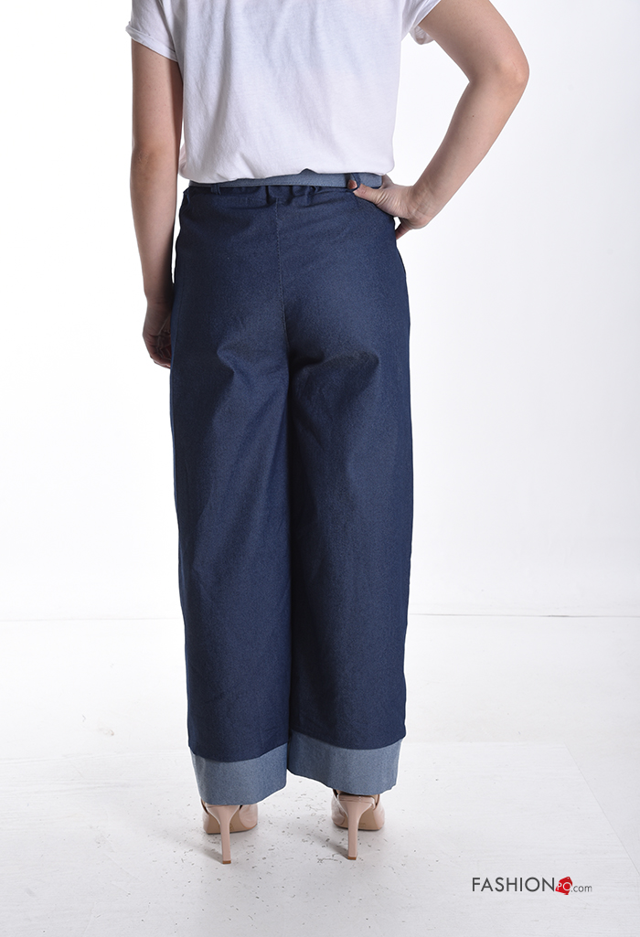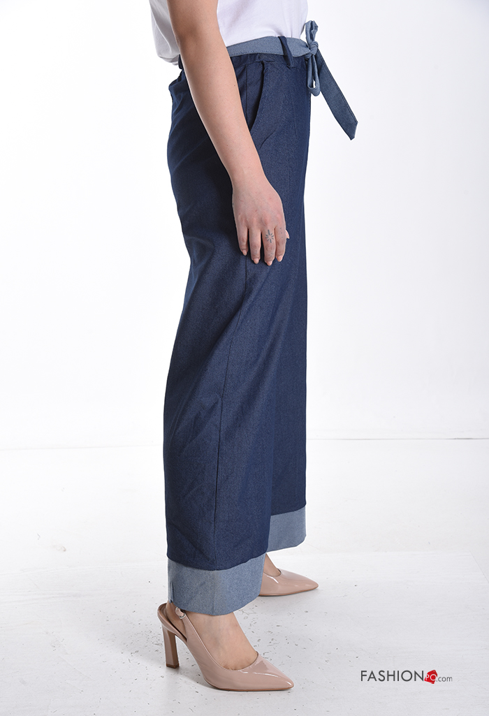 Home > Clothing > Trousers > Cotton Trousers with fabric belt with elastic with pockets
