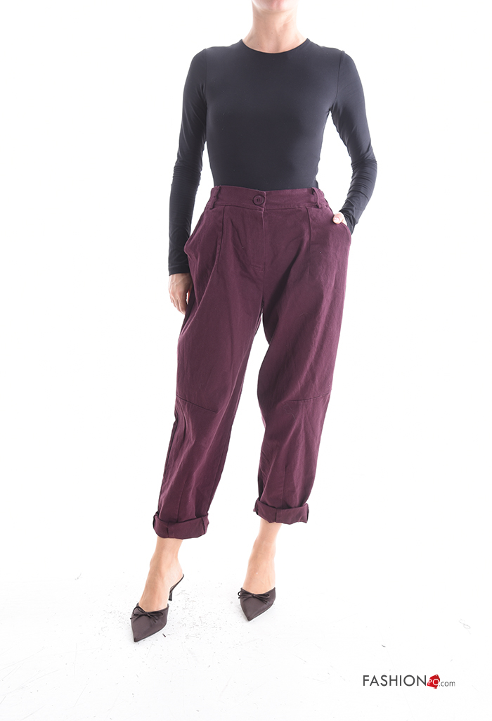 Home > Clothing > Trousers > Cotton Trousers with buttons with zip with pockets