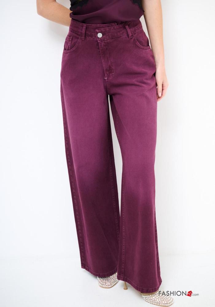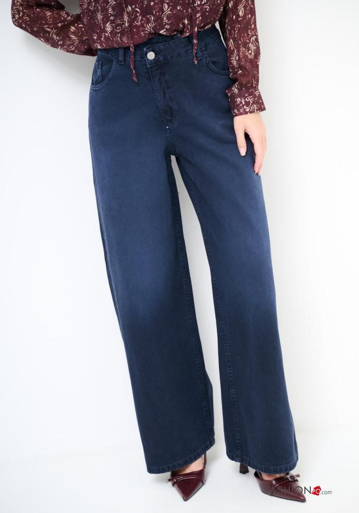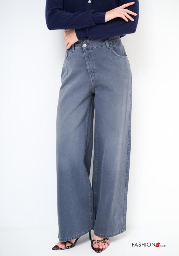 Home > Clothing > Trousers > wide leg Cotton Trousers with buttons with zip
