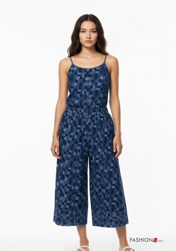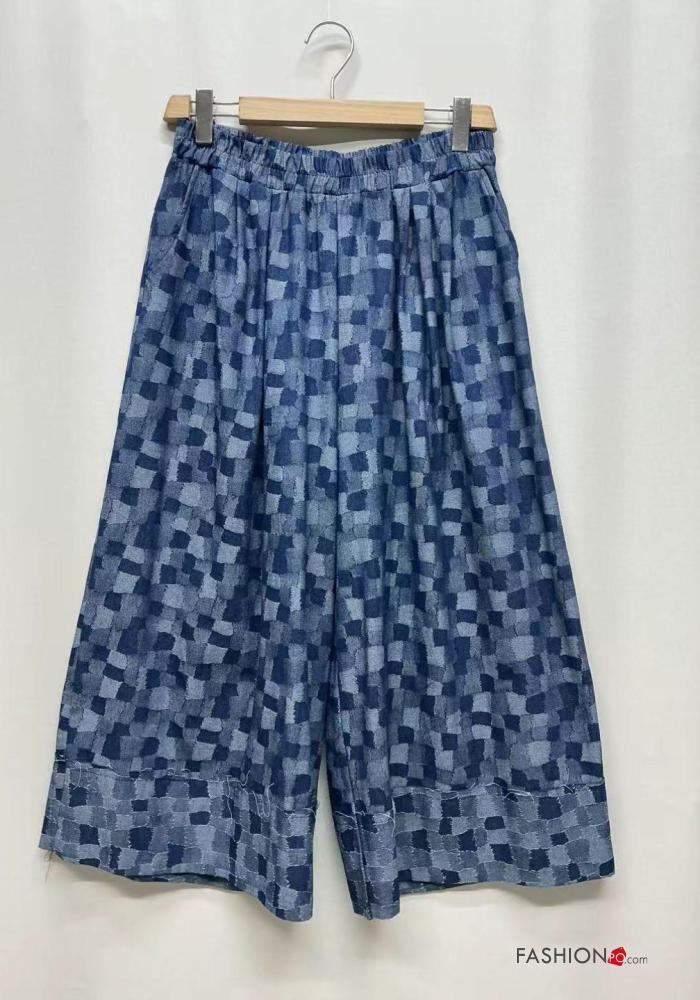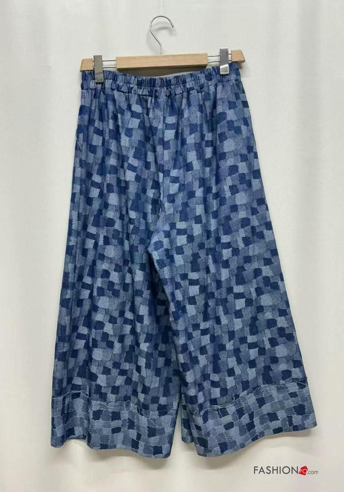 Home > Clothing > Trousers > Abstract print wide leg Cotton Trousers with elastic