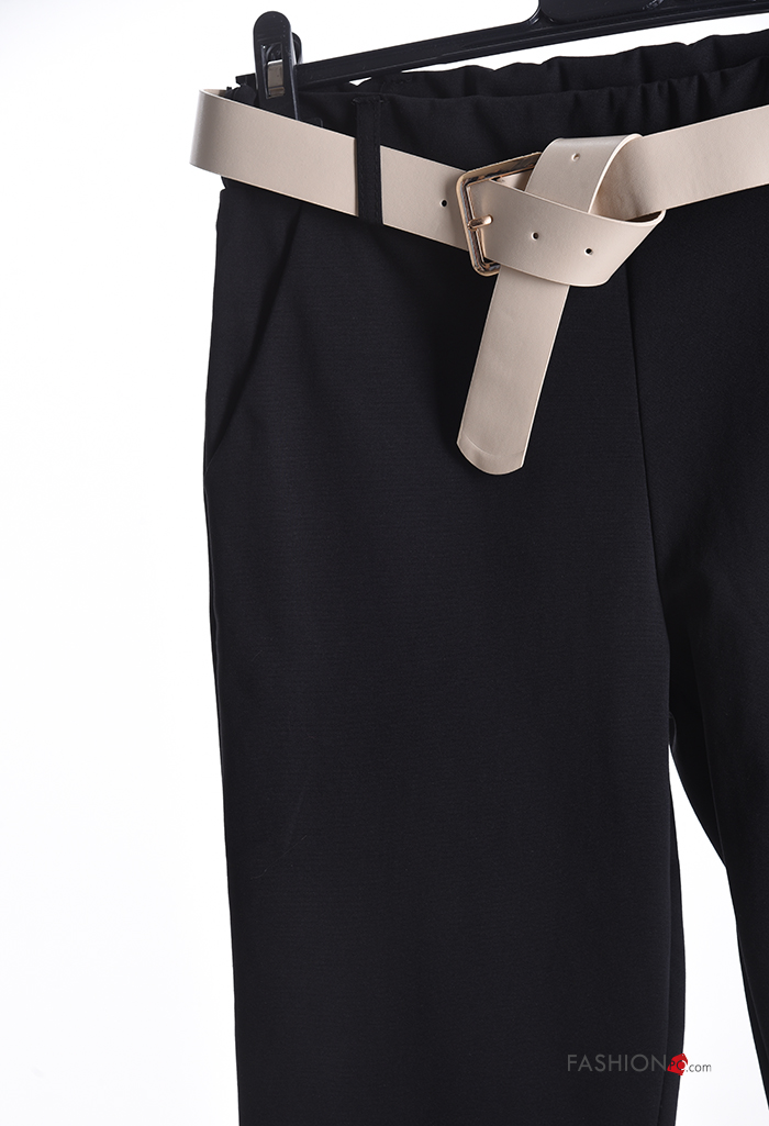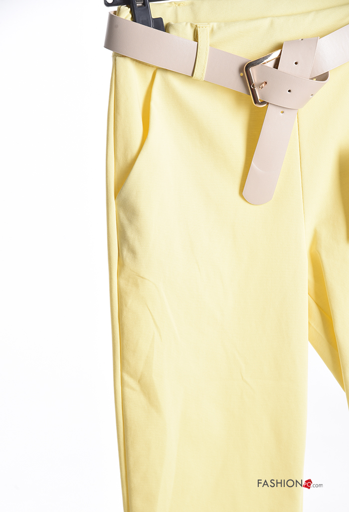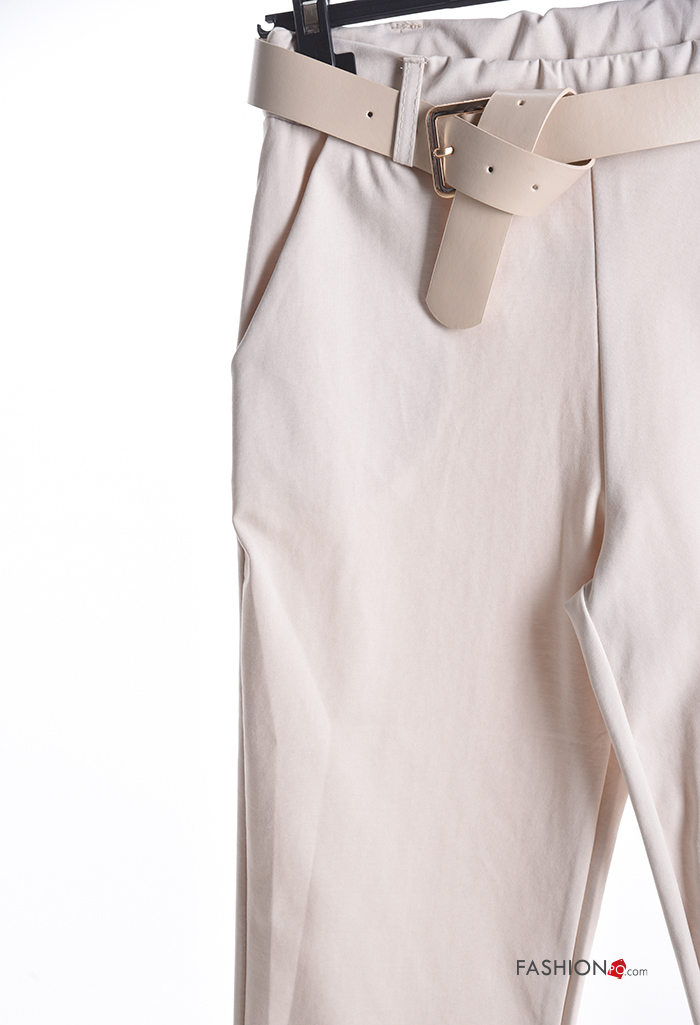 Home > Clothing > Trousers > skinny Cotton Trousers with belt with elastic with pockets