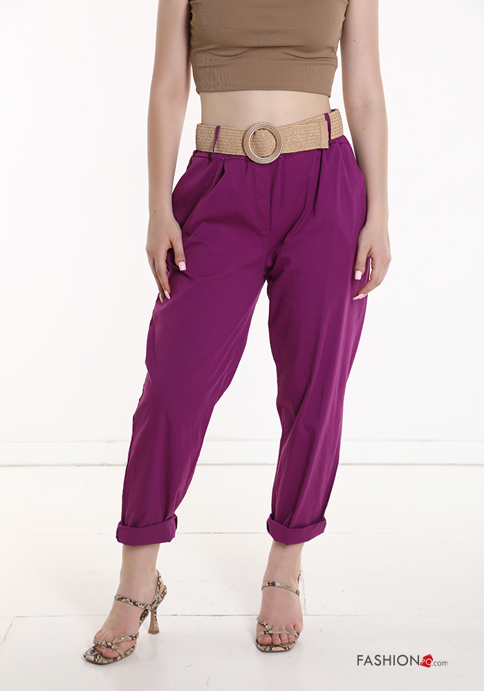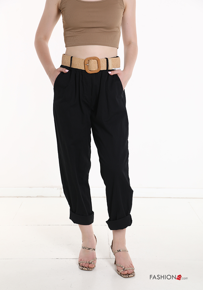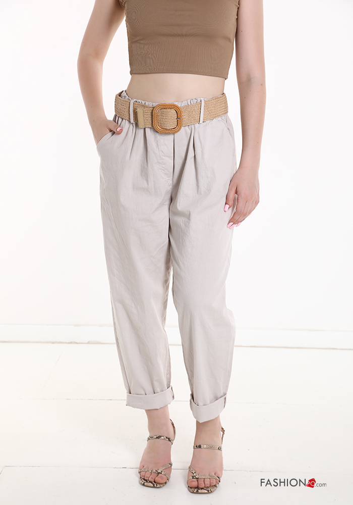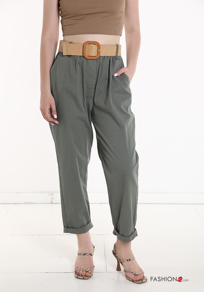 Home > Clothing > Trousers > Cotton Trousers with belt with elastic with pockets