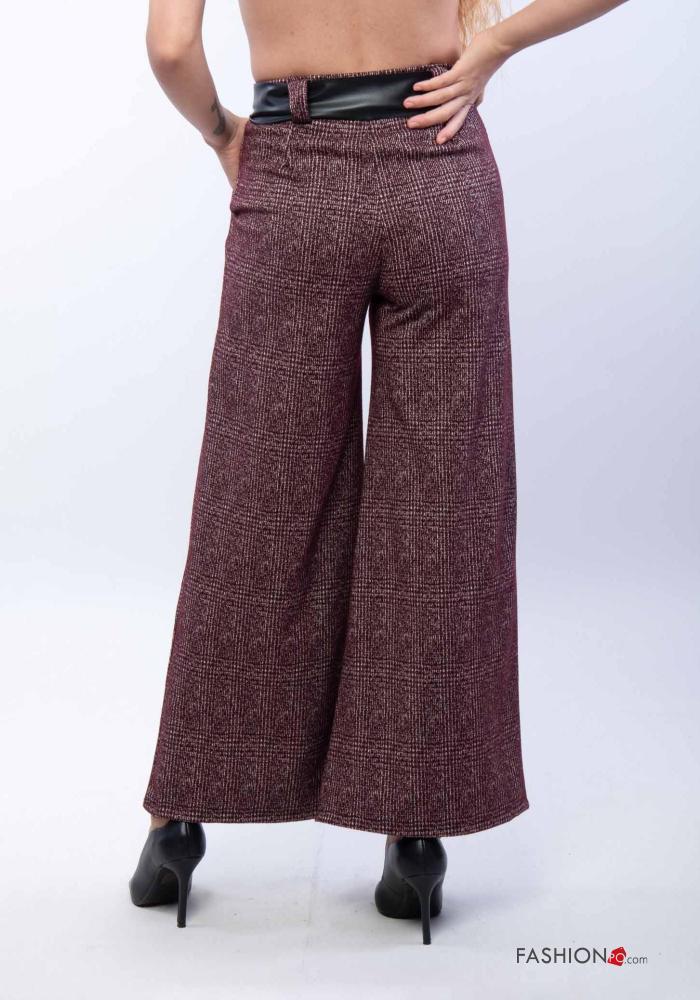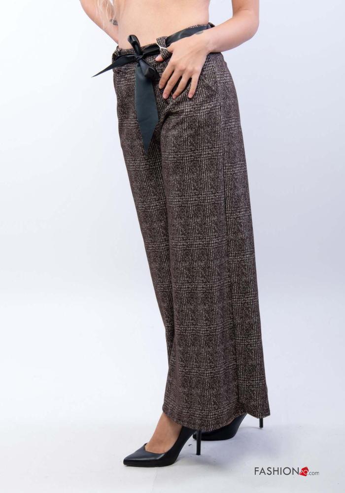 Home > Clothing > Trousers > Tartan wide leg Trousers with fabric belt with elastic with pockets