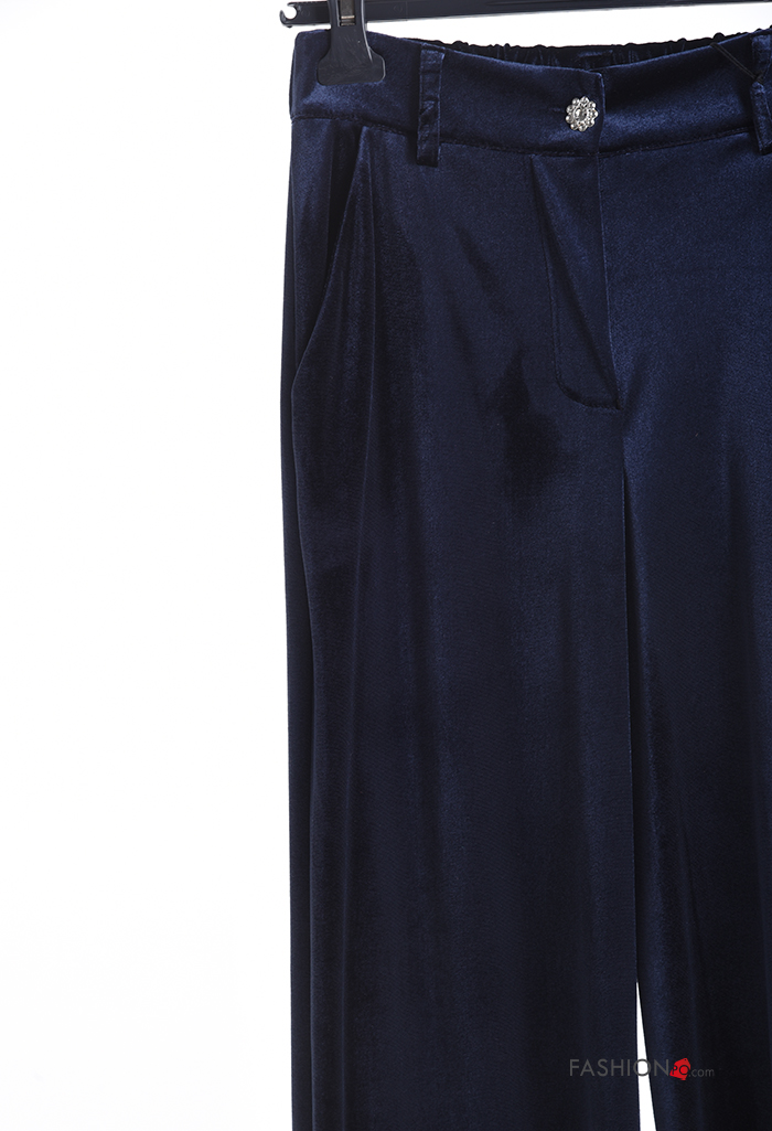 Home > Clothing > Trousers > Velvet wide leg Trousers with pockets with rhinestones