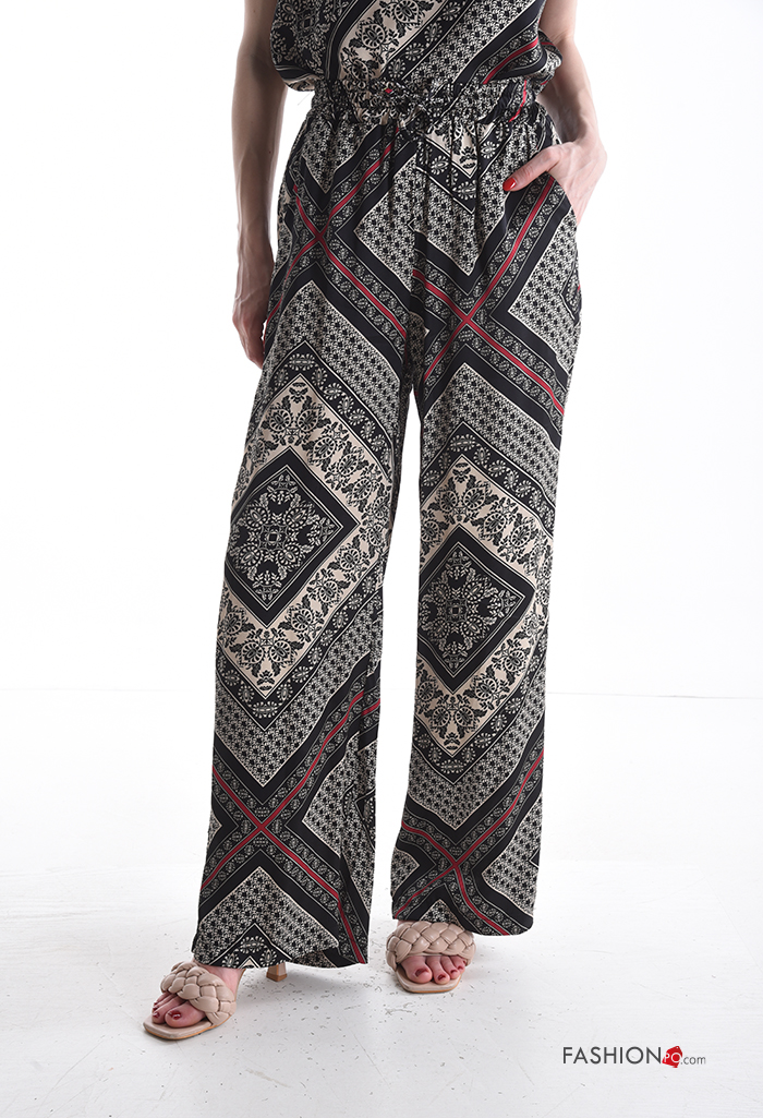 Home > Clothing > Trousers > Patterned wide leg Trousers with pockets with elastic