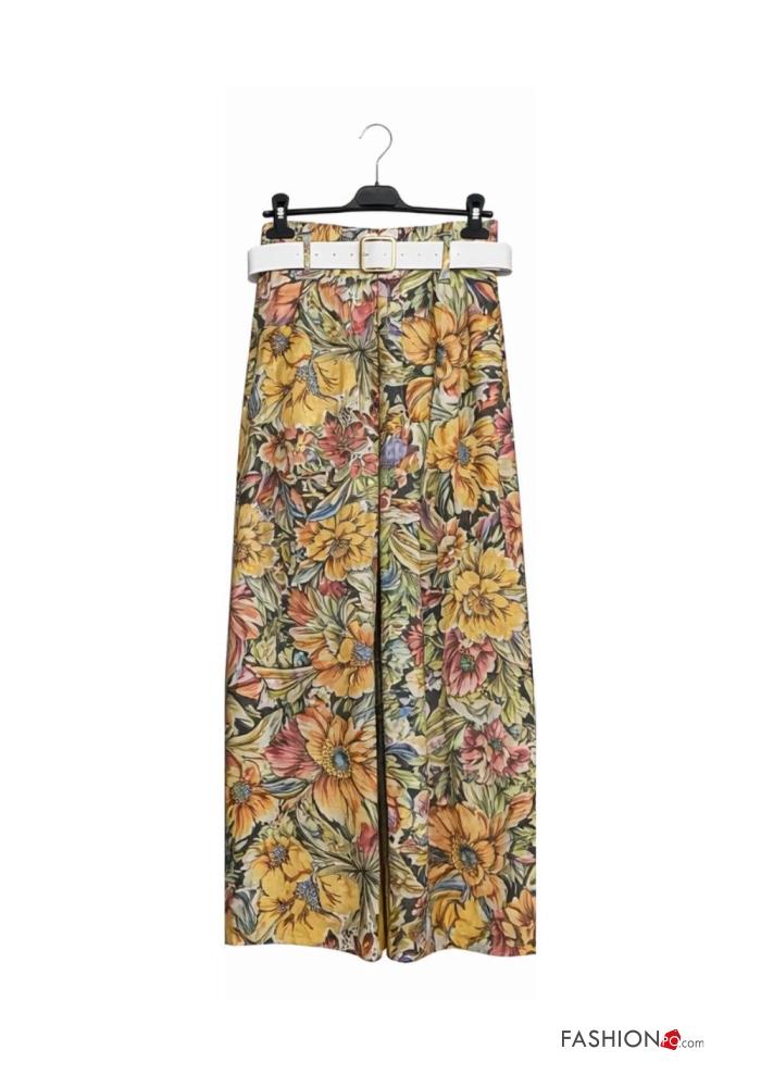 high waist Trousers with belt with pockets