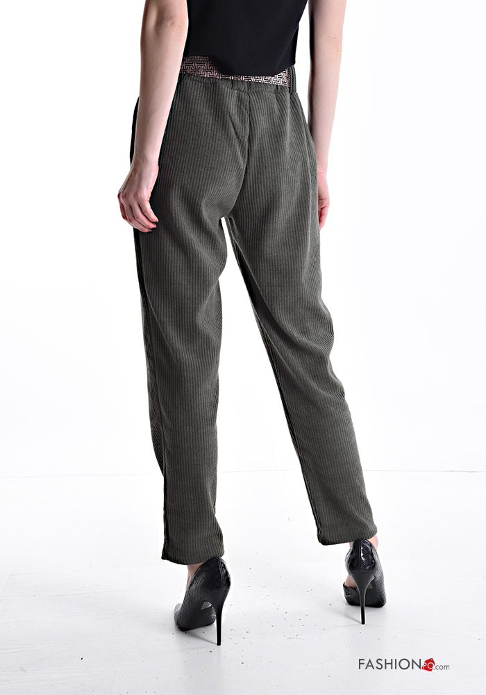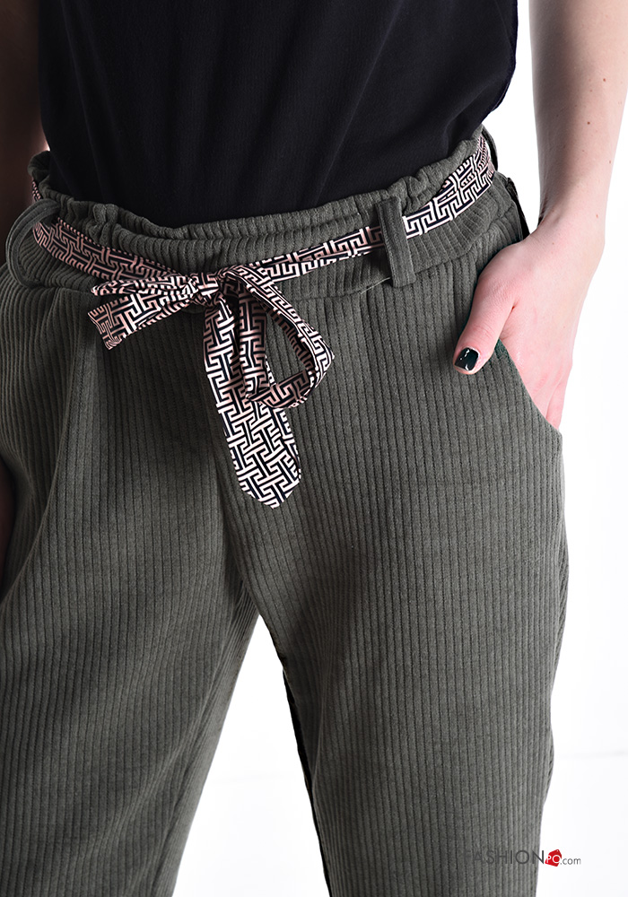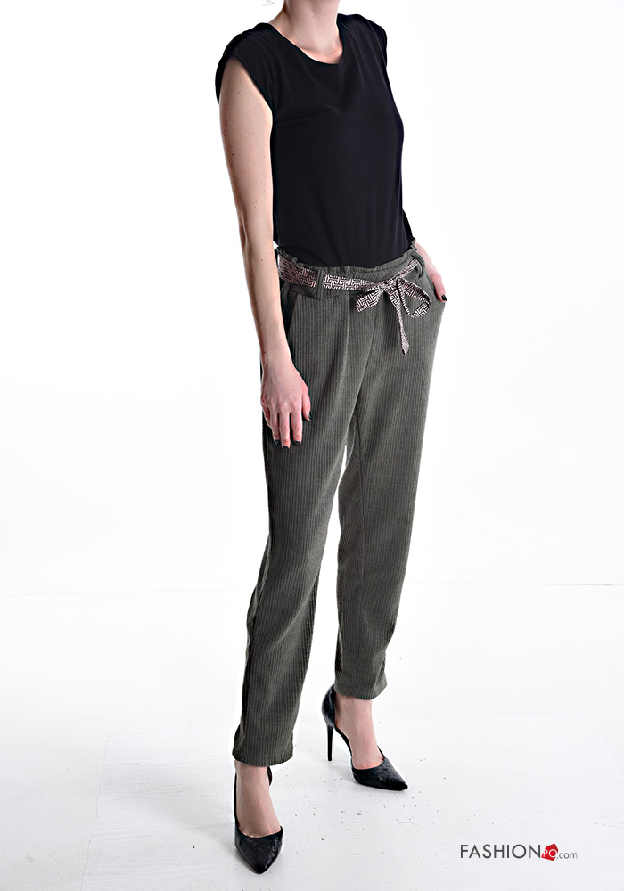 Home > Clothing > Trousers > Ribbed Trousers with elastic with sash with pockets