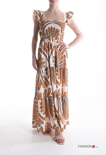 Vestido largo manga corta espalda descubierta Estampado abstracto con elástico