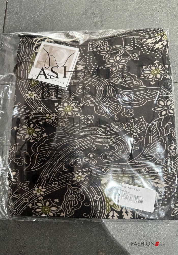 Camiseta de manga larga de Mezcla de Cachemira cuello redondo Estampado animal