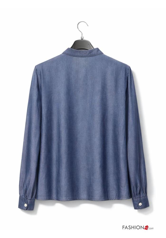 Camisa tela vaquera con lazo con cuello en v