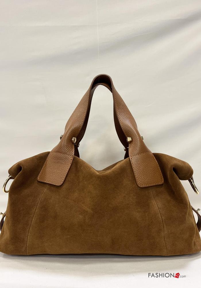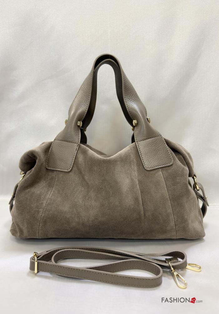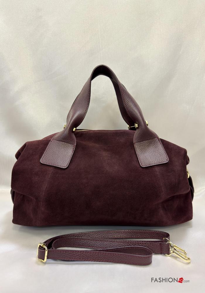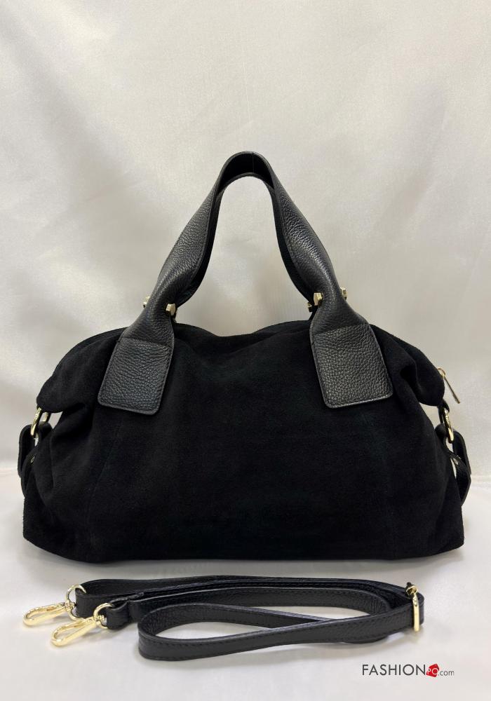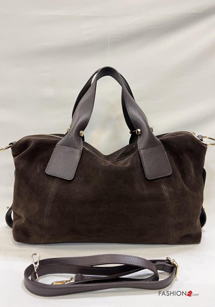 Bolsa de mano de Cuero Genuino con cremallera con bandolera con bolsillos