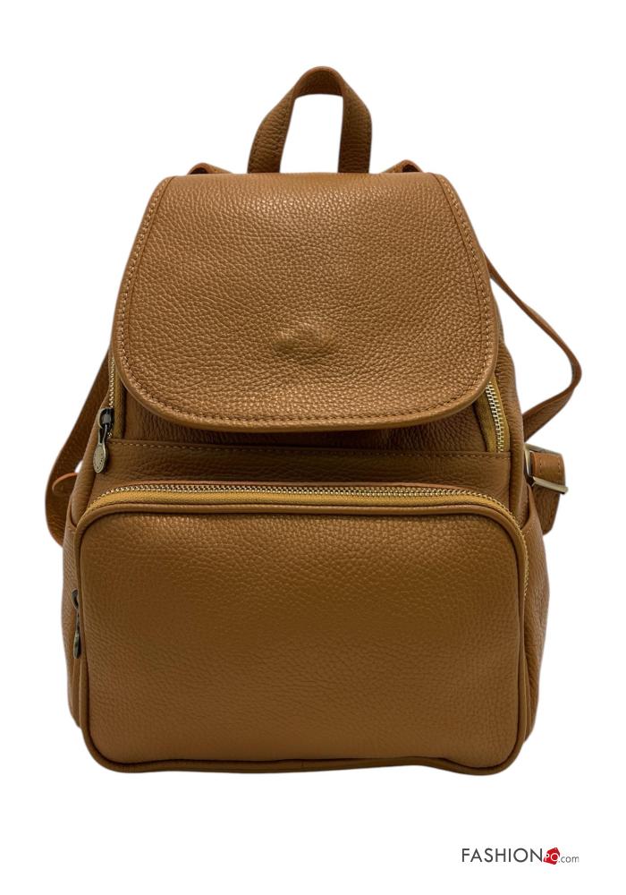 Mochila de Cuero Genuino con bolsillos