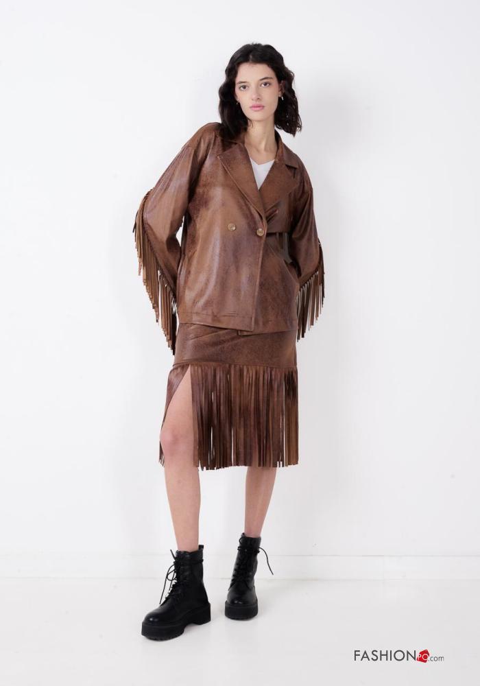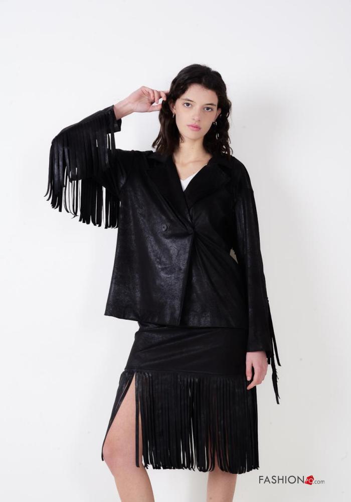 Home > Ropa > Abrigos y Chaquetas > Abrigo imitación de cuero manga larga con botones con flecos