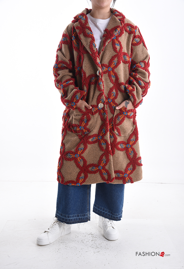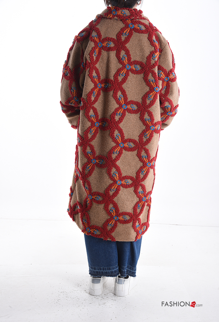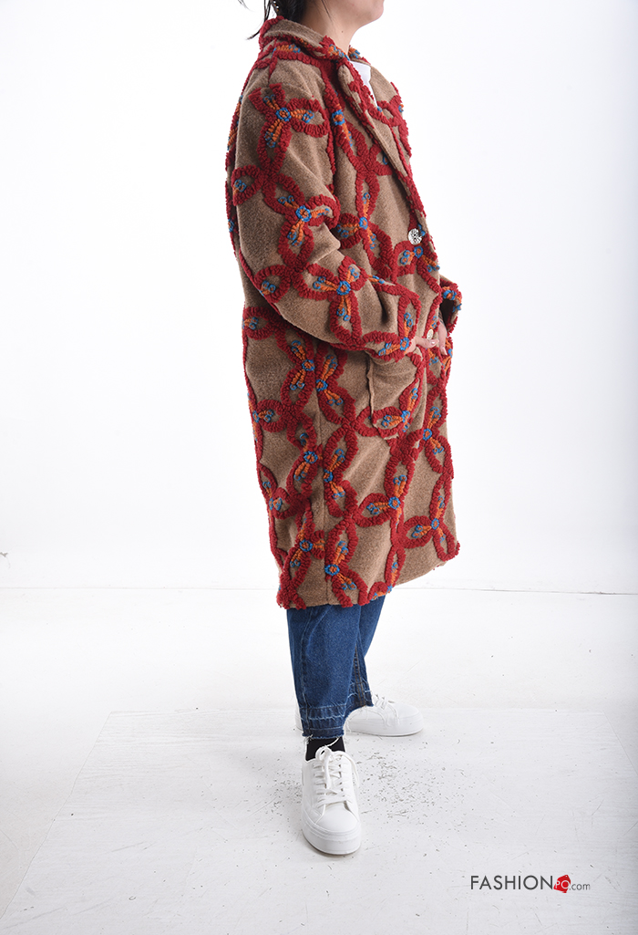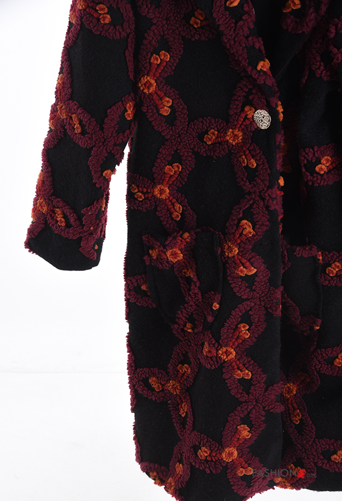 Abrigo de Mezcla de Cachemira extra grande Estampado abstracto con bolsillos con botones con forro