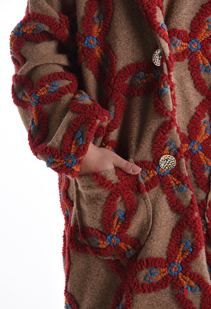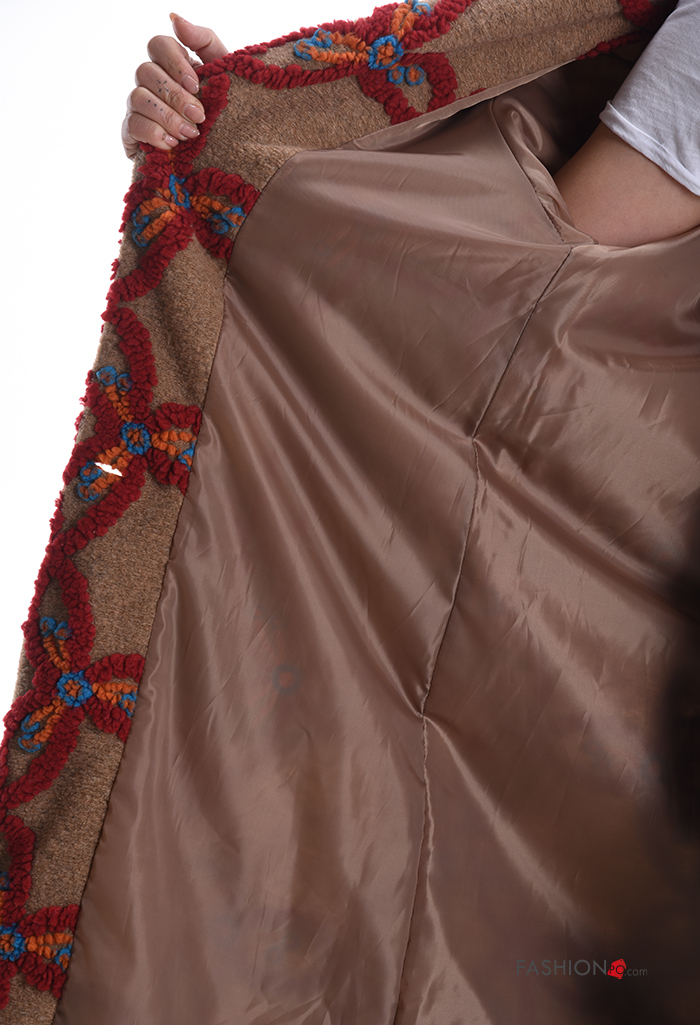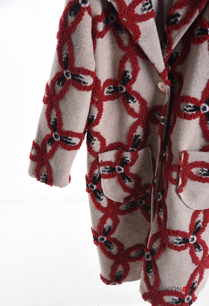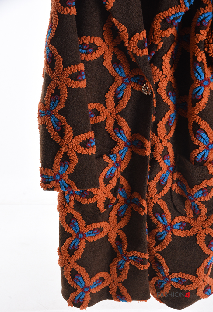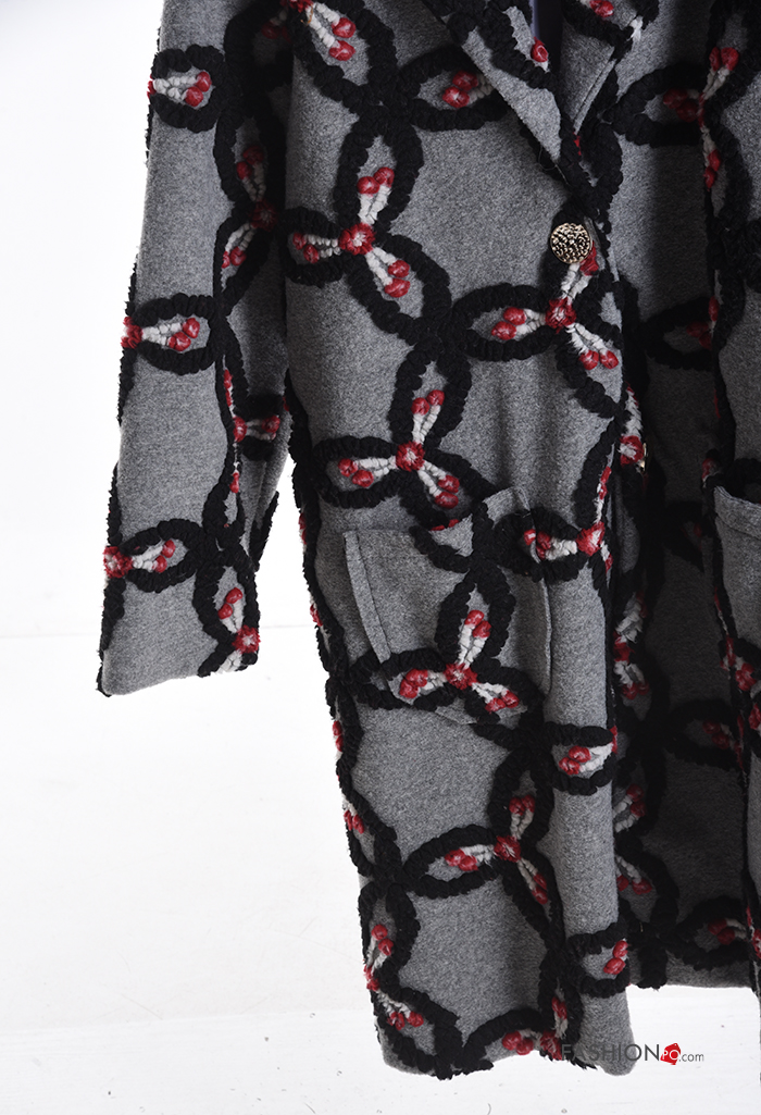 Abrigo de Mezcla de Cachemira extra grande Estampado abstracto con bolsillos con botones con forro