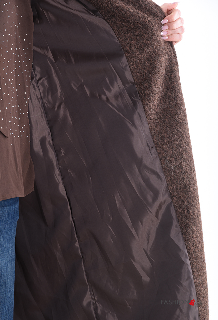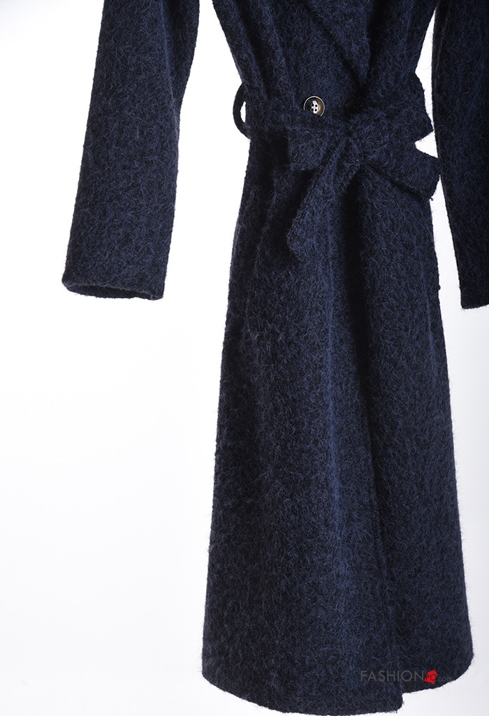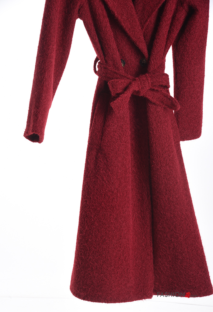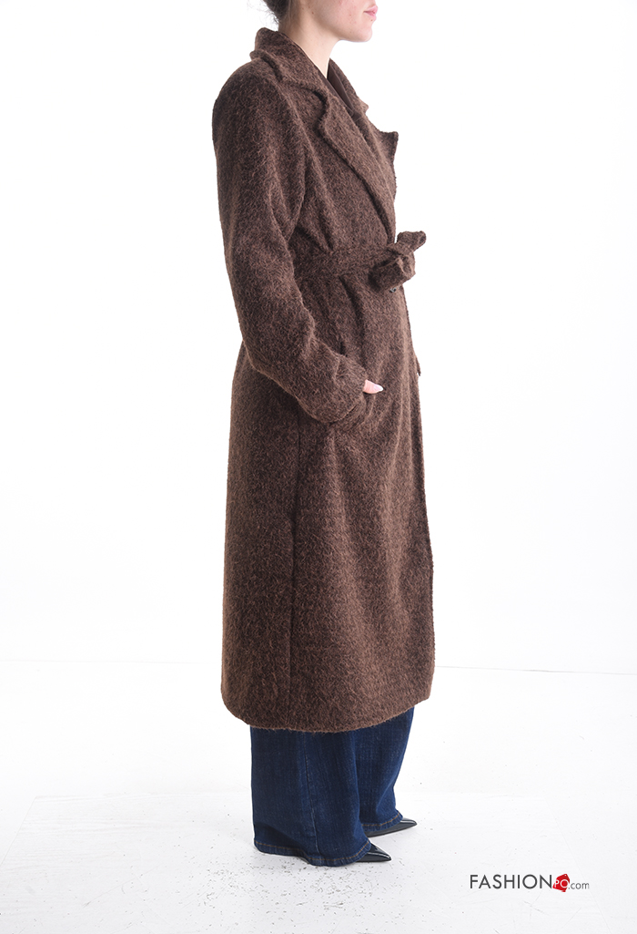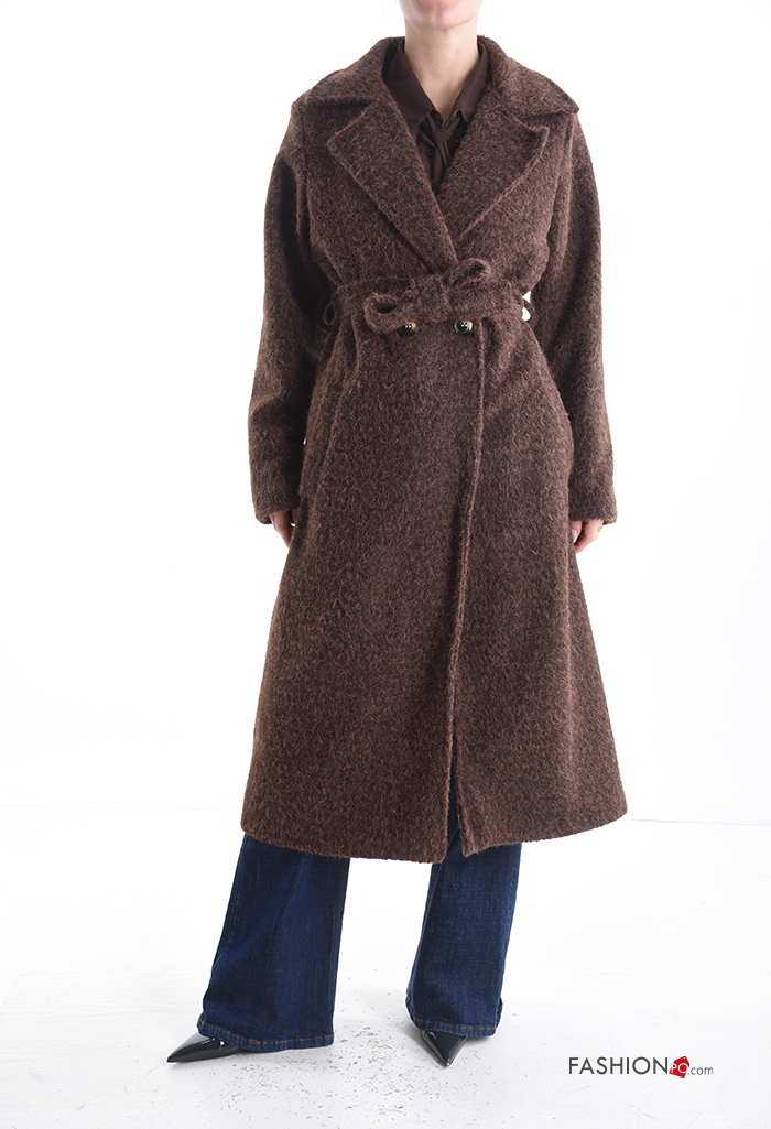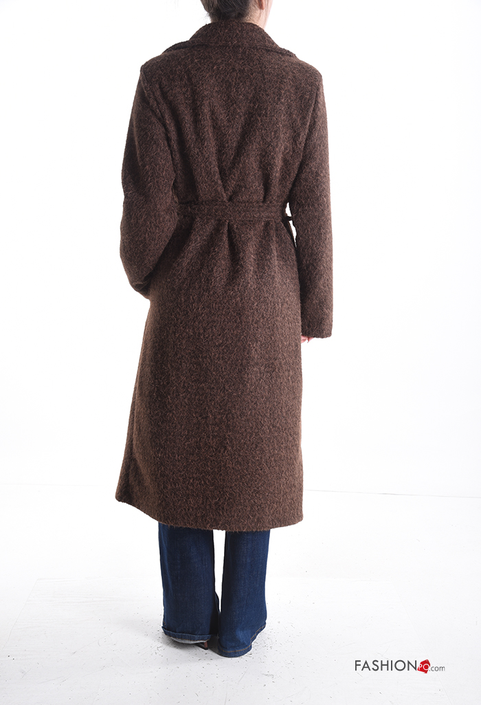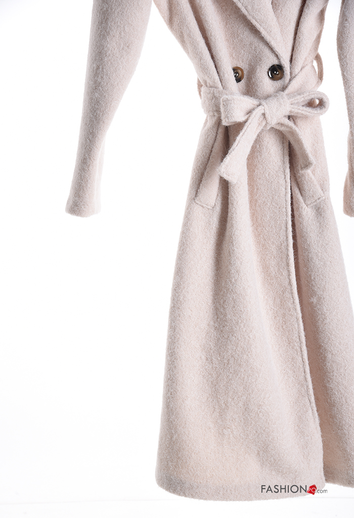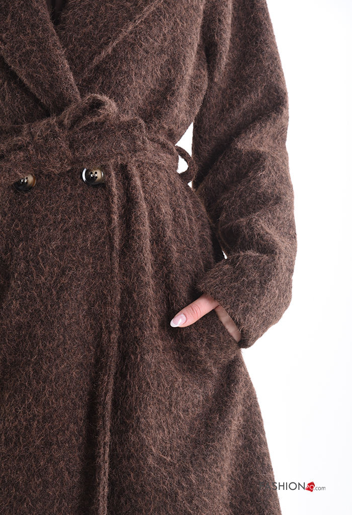Abrigo doble botonadura largo con cinturón con bolsillos