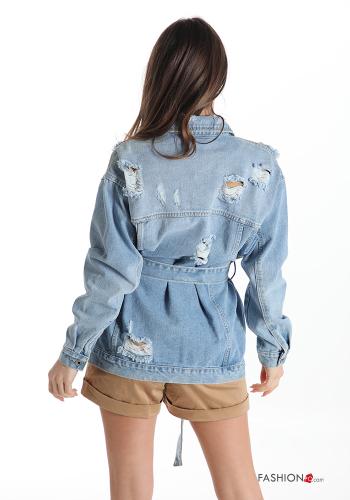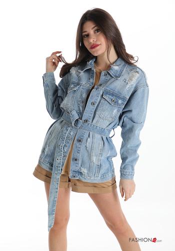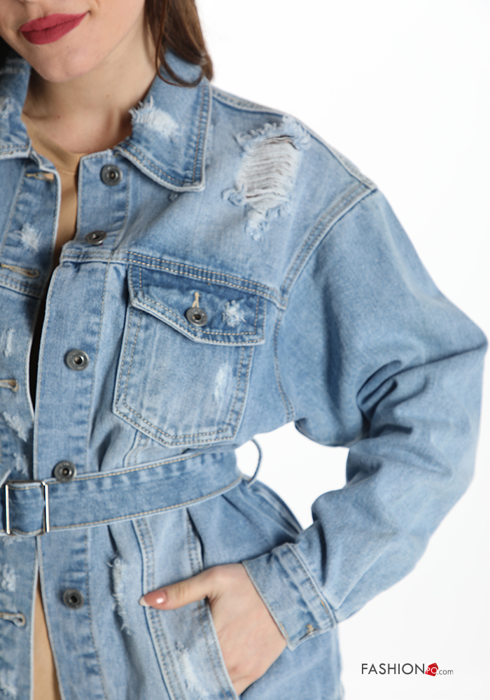Home > Ropa > Abrigos y Chaquetas > Chaqueta de Algodón tela vaquera con botones con bolsillos con cinturón
