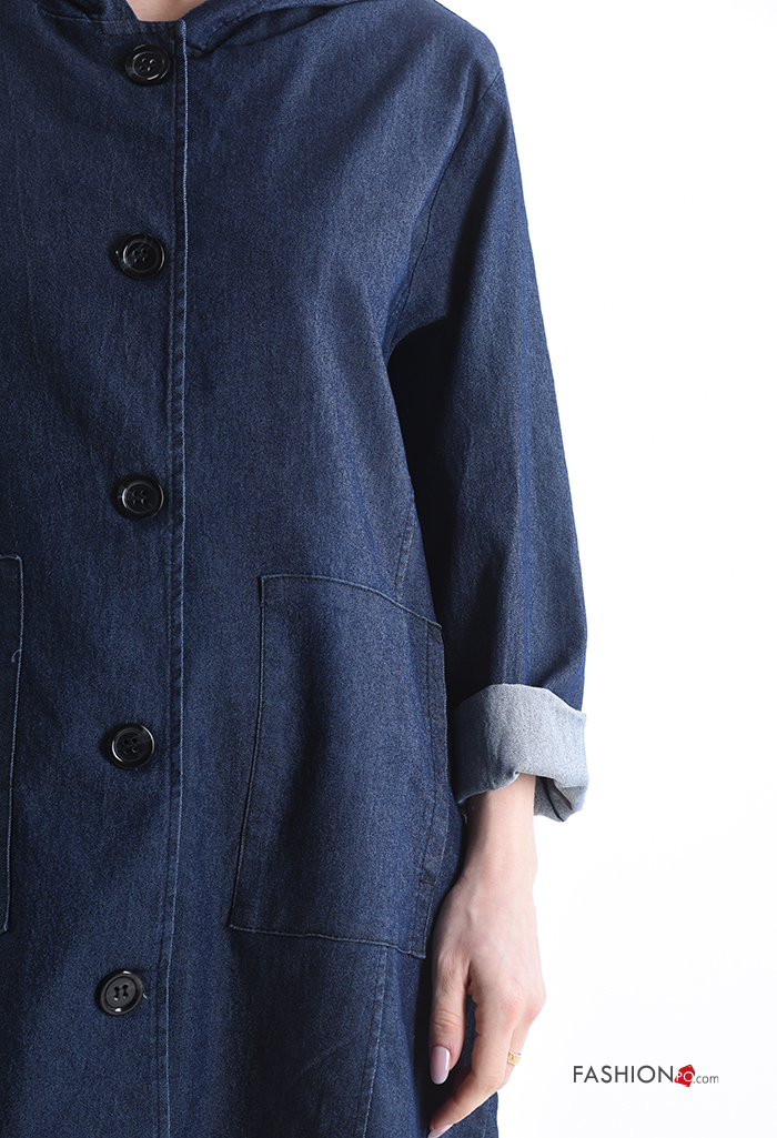 Chaqueta de Algodón tela vaquera largo con bolsillos con capucha con botones