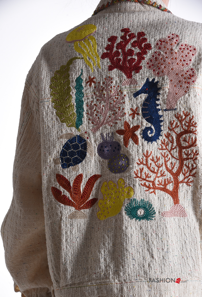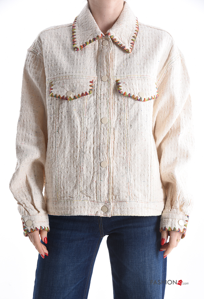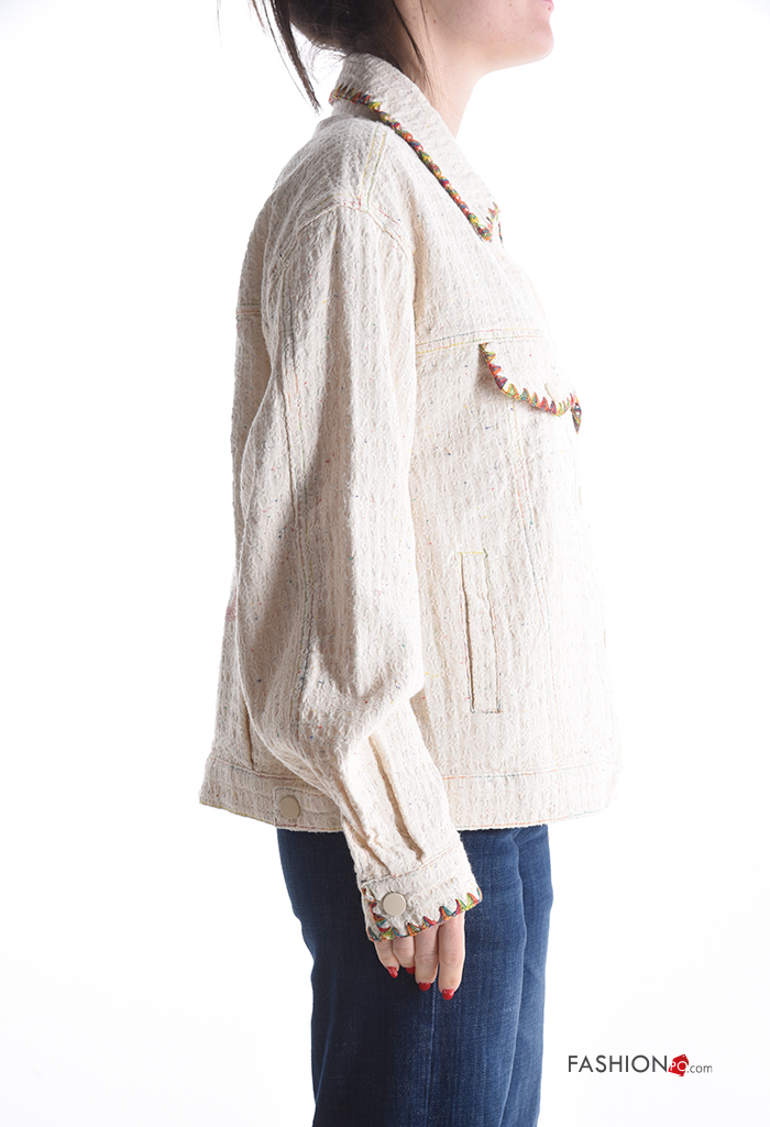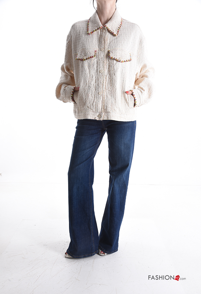 Home > Ropa > Abrigos y Chaquetas > Chaqueta de Lino manga larga Patrón bordado con botones con bolsillos